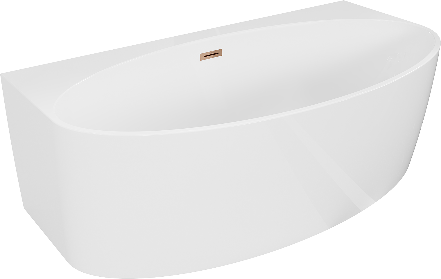 Mexen Bruna bañera exenta adosada 170 x 88 cm, blanco brillo, rebosadero oro rosa - 52731708800-60