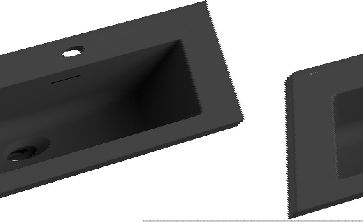 El lavabo tiene un agujero en el que podemos instalar el grifo. Esto permite ahorrar un valioso espacio en el baño y resaltar su estética. Esta solución también facilita el mantenimiento de la limpieza alrededor del lavabo.
