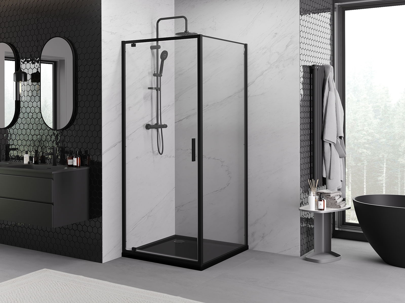 Mexen Rio cabina de ducha cuadrada 90 x 90 cm, transparente, negra - 860-090-090-70-00