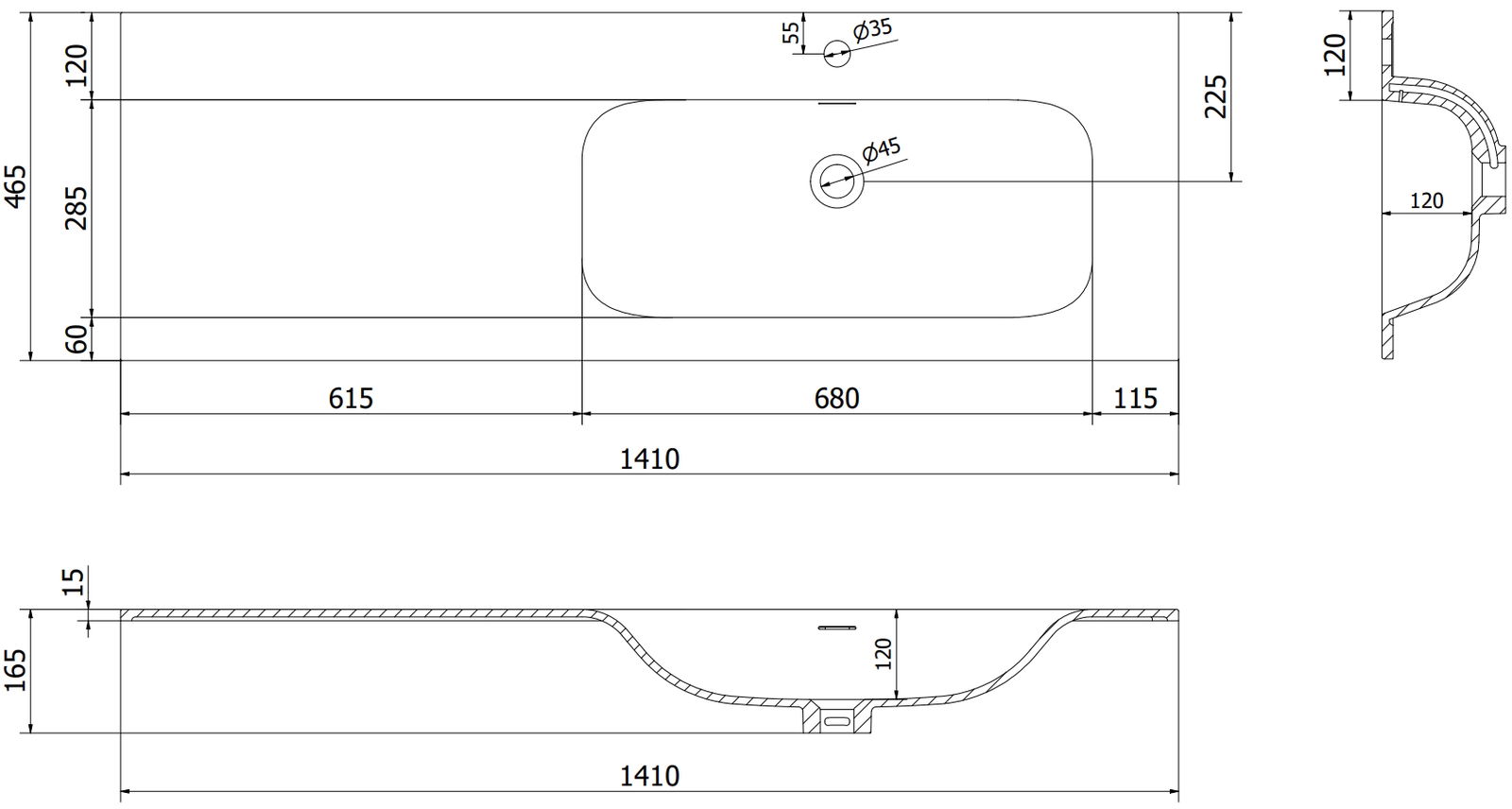 Mexen Vela lavabo empotrado de encimera derecho 141 x 46,5 cm, negro mate - 25231471P