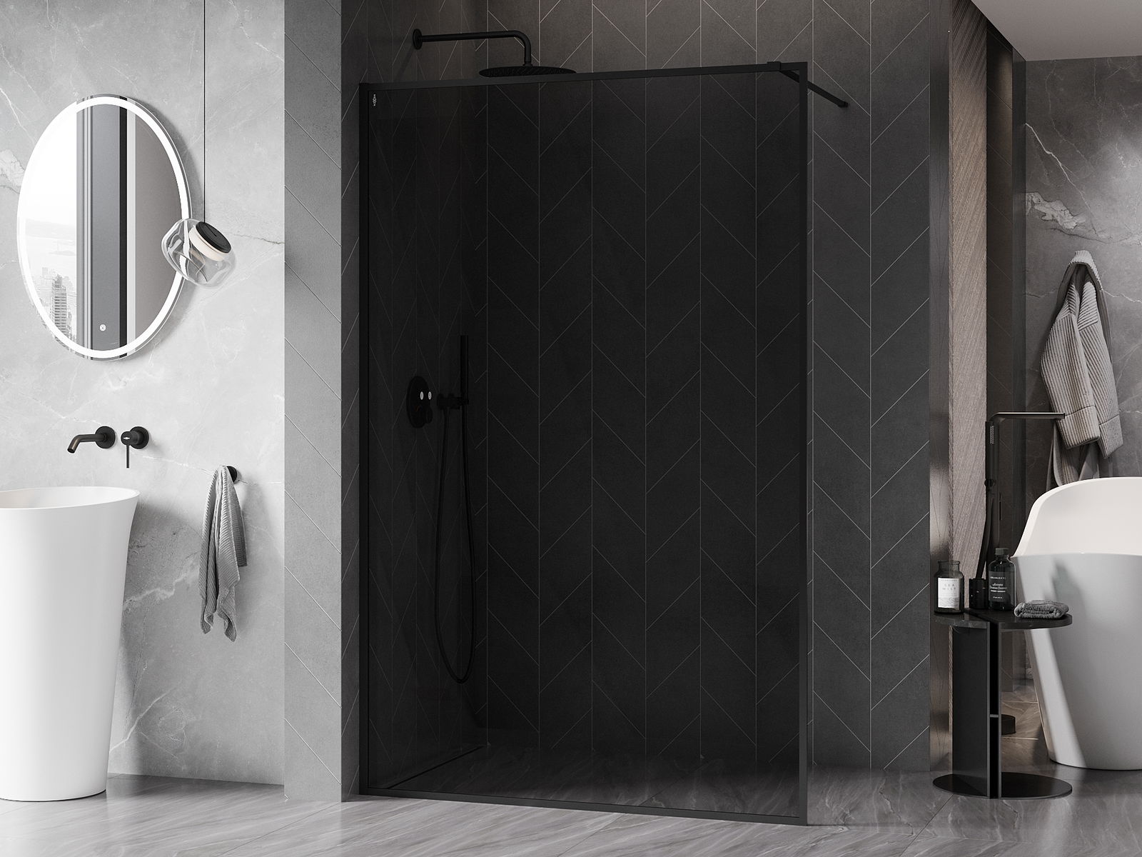 Mexen Kioto-F panel de ducha Walk-in con marco 140 x 202 cm, grafito 8 mm, negro - 800-140-104-70-40