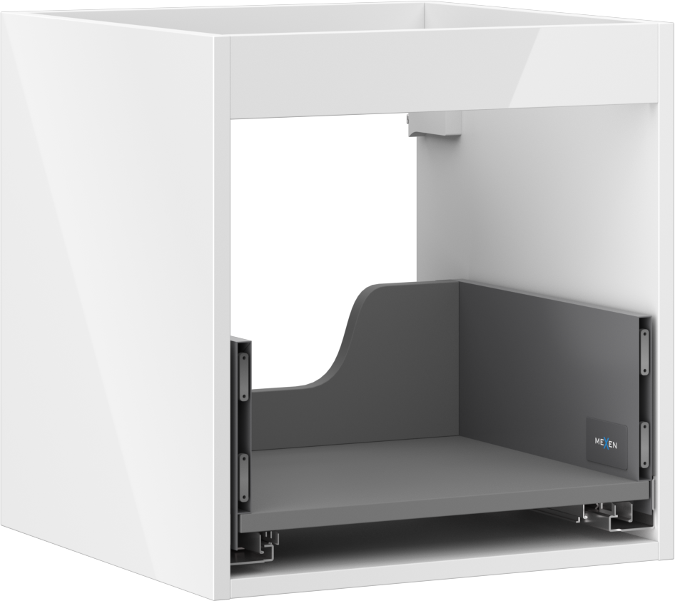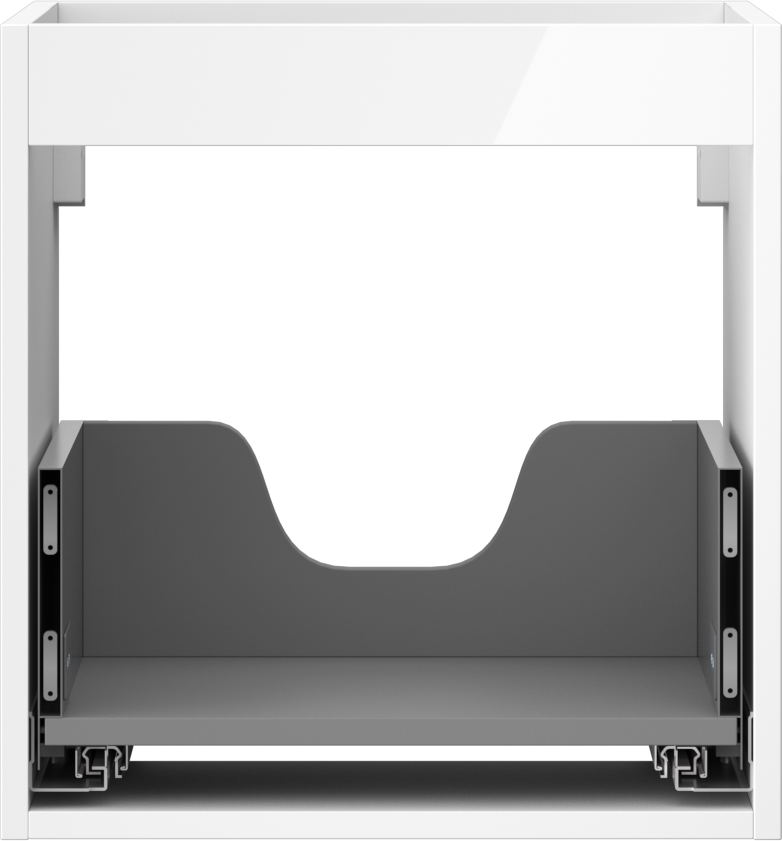 El corte en el cajón está diseñado de tal manera que pueda alojar el sifón, que es necesario en las instalaciones de lavabos. Gracias a esto, el mueble puede ser montado de manera completamente funcional, sin la necesidad de renunciar al espacio en el cajón en favor de la instalación.
