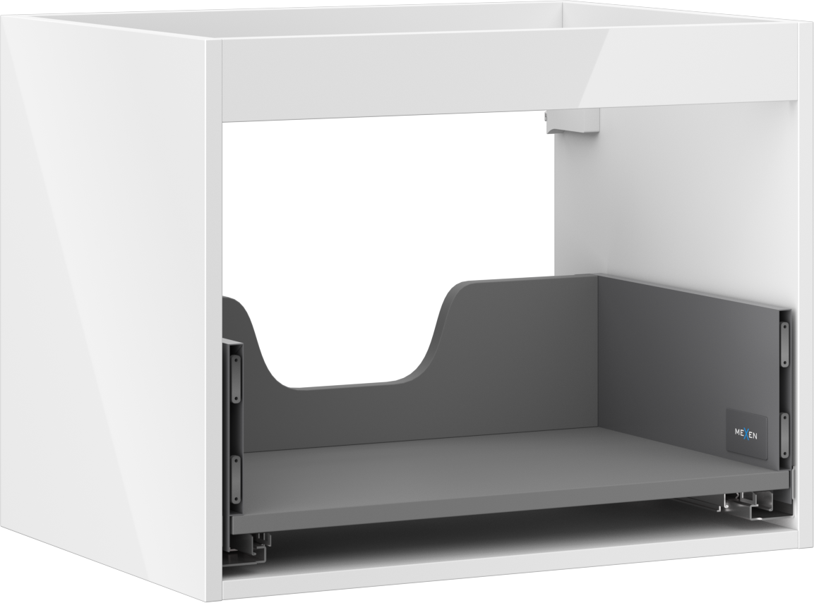 El corte en el cajón está diseñado de tal manera que pueda alojar el sifón, que es necesario en las instalaciones de lavabos. Gracias a esto, el mueble puede ser montado de manera completamente funcional, sin la necesidad de renunciar al espacio en el cajón en favor de la instalación.