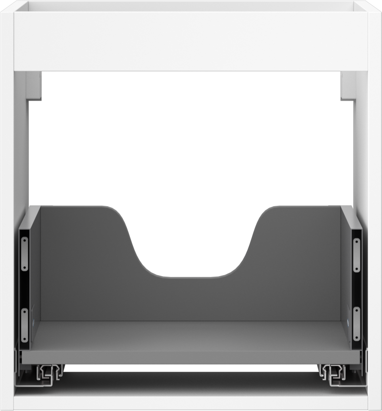 El corte en el cajón está diseñado de tal manera que pueda alojar el sifón, que es necesario en las instalaciones de lavabos. Gracias a esto, el mueble puede ser montado de manera completamente funcional, sin la necesidad de renunciar al espacio en el cajón en favor de la instalación.
