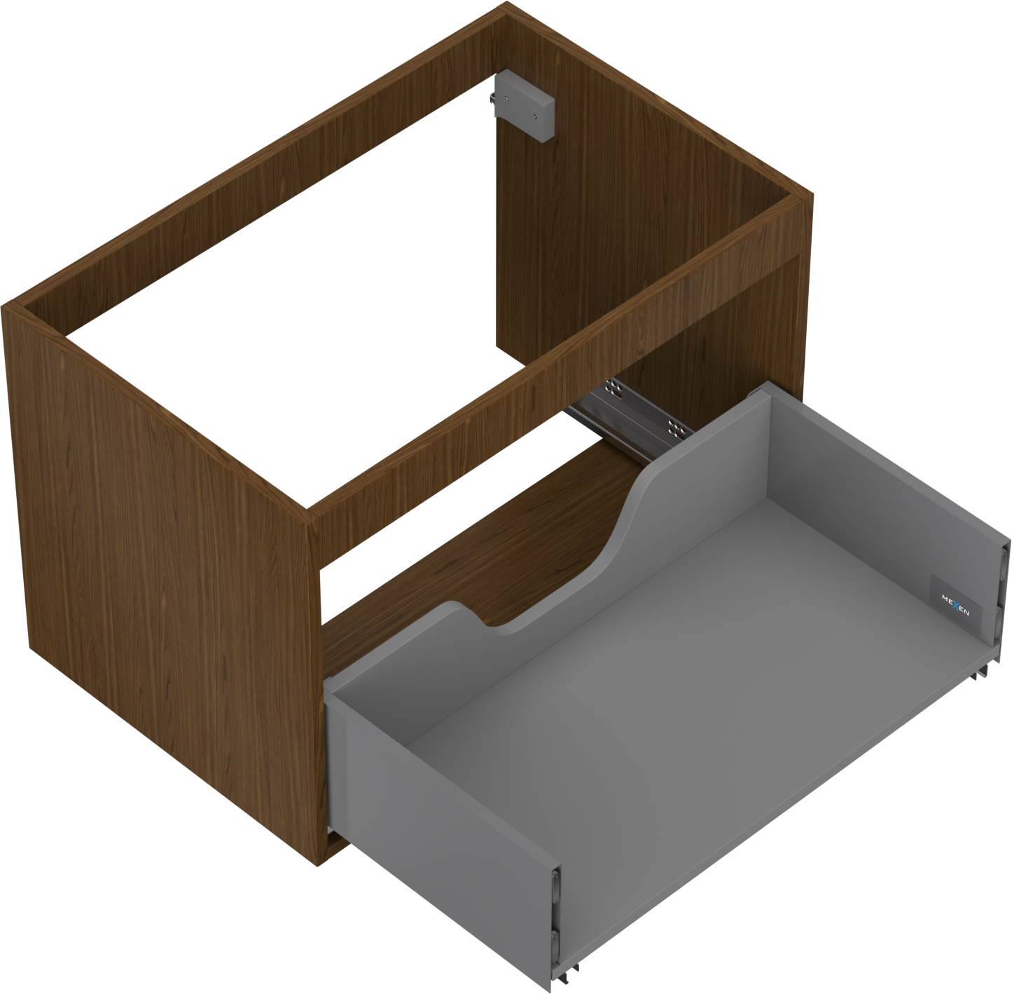 El corte en el cajón está diseñado de tal manera que pueda alojar el sifón, que es necesario en las instalaciones de lavabos. Gracias a esto, el mueble puede ser montado de manera completamente funcional, sin la necesidad de renunciar al espacio en el cajón en favor de la instalación.