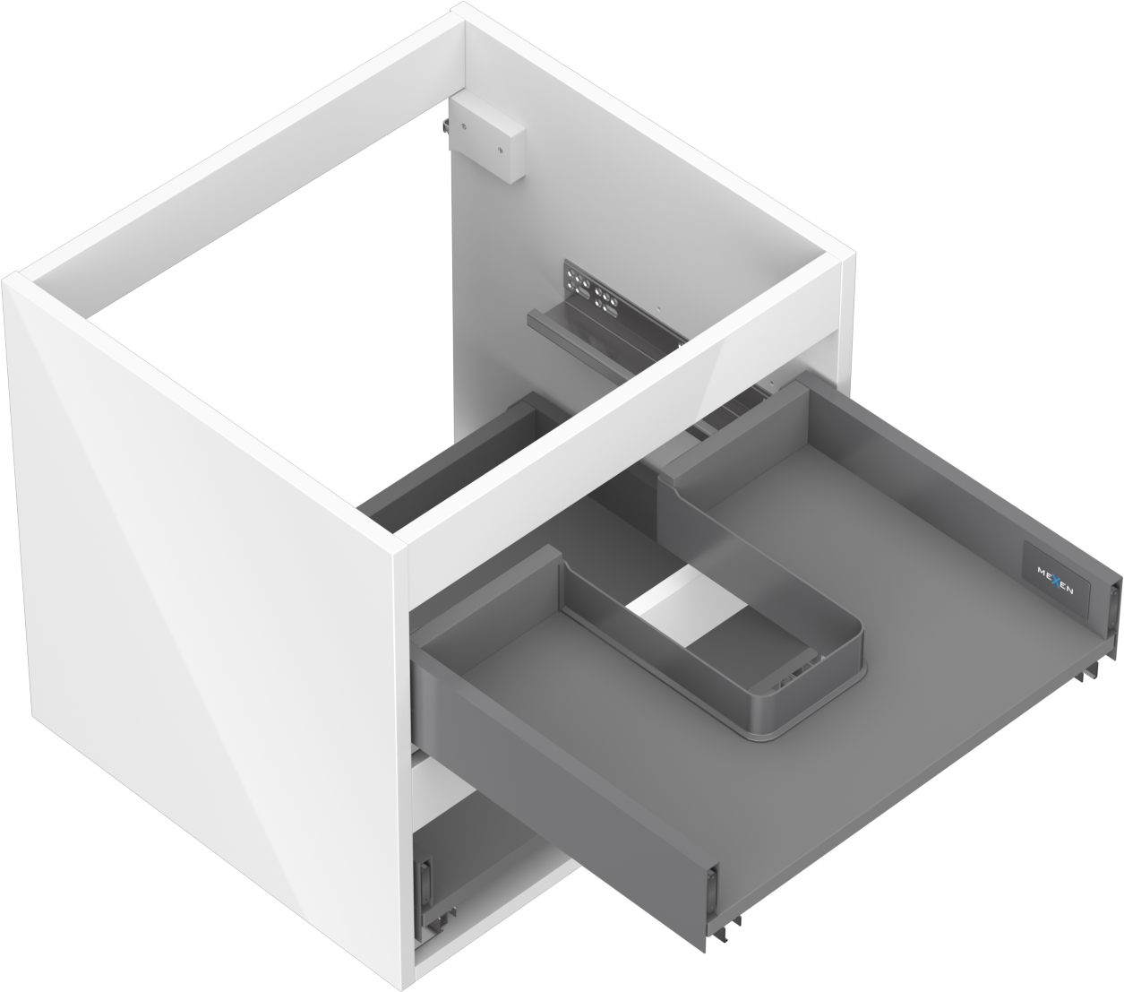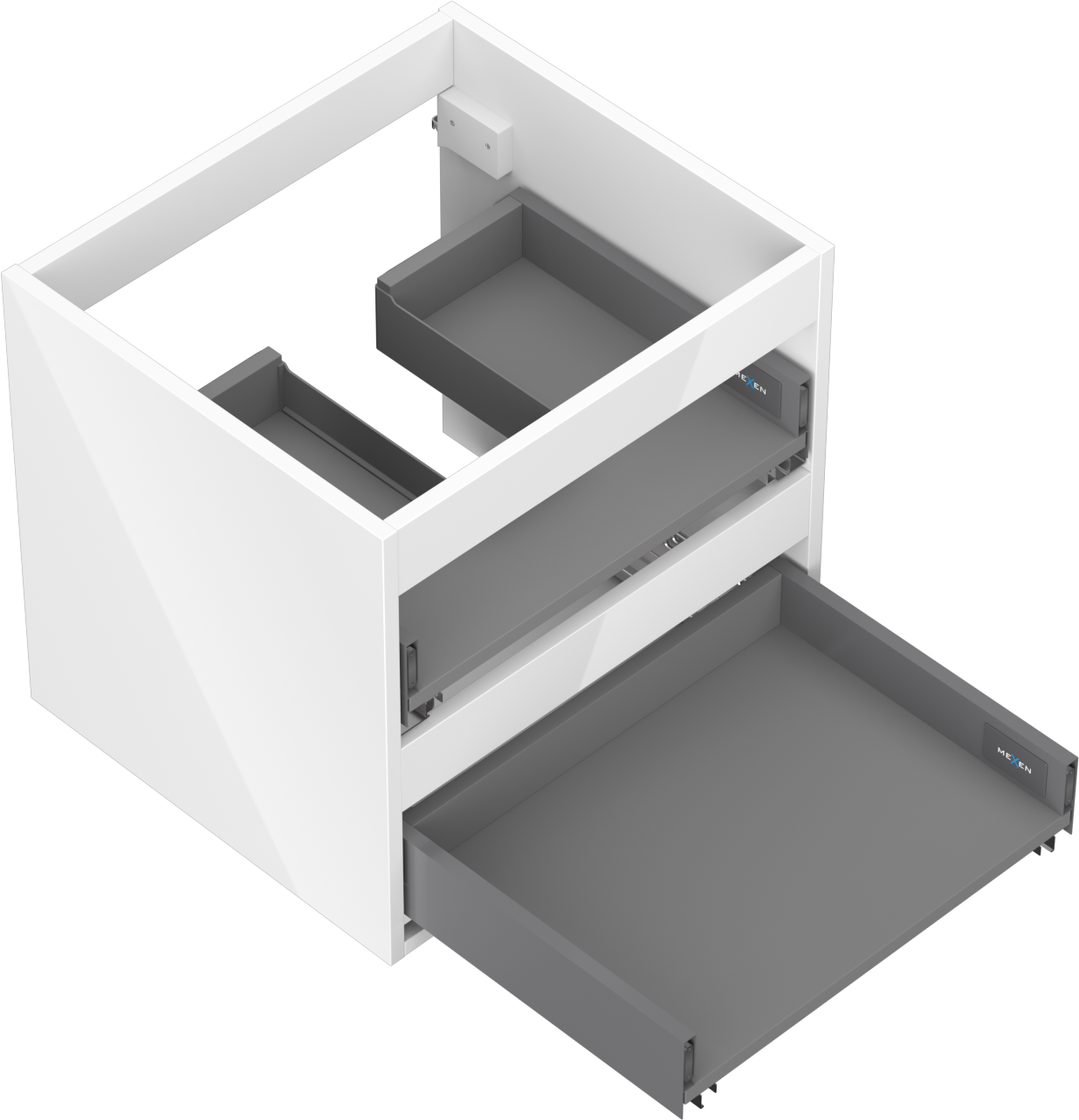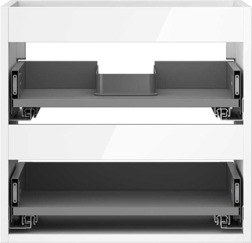 El corte en el cajón está diseñado de tal manera que pueda alojar el sifón, que es necesario en las instalaciones de lavabos. Gracias a esto, el mueble puede ser montado de manera completamente funcional, sin la necesidad de renunciar al espacio en el cajón en favor de la instalación.