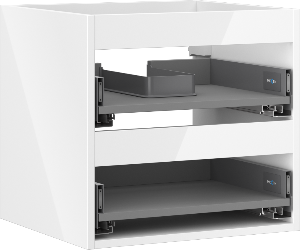 Un cajón con deslizamiento completo es un tipo de cajón que está equipado con un mecanismo que permite su extracción total del cuerpo del mueble. Este mecanismo facilita el acceso al contenido del cajón, ya que no hay necesidad de alcanzar los bordes traseros.