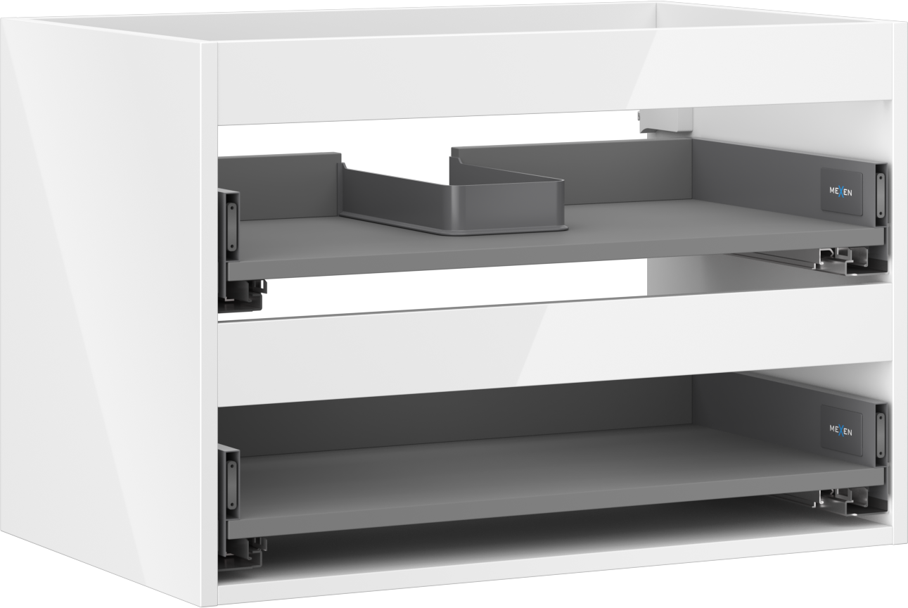 El corte en el cajón está diseñado de tal manera que pueda alojar el sifón, que es necesario en las instalaciones de lavabos. Gracias a esto, el mueble puede ser montado de manera completamente funcional, sin la necesidad de renunciar al espacio en el cajón en favor de la instalación.