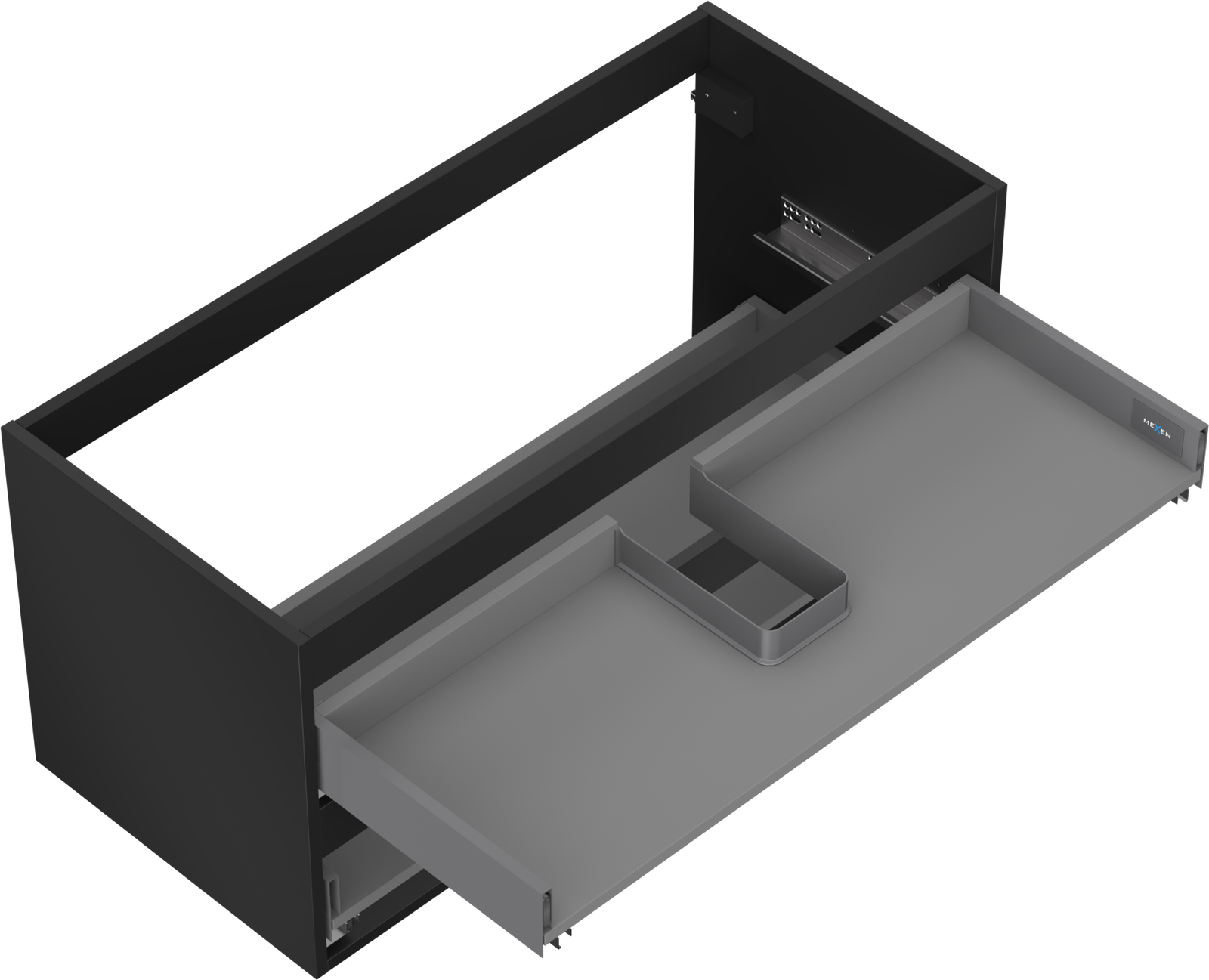 El corte en el cajón está diseñado de tal manera que pueda alojar el sifón, que es necesario en las instalaciones de lavabos. Gracias a esto, el mueble puede ser montado de manera completamente funcional, sin la necesidad de renunciar al espacio en el cajón en favor de la instalación.