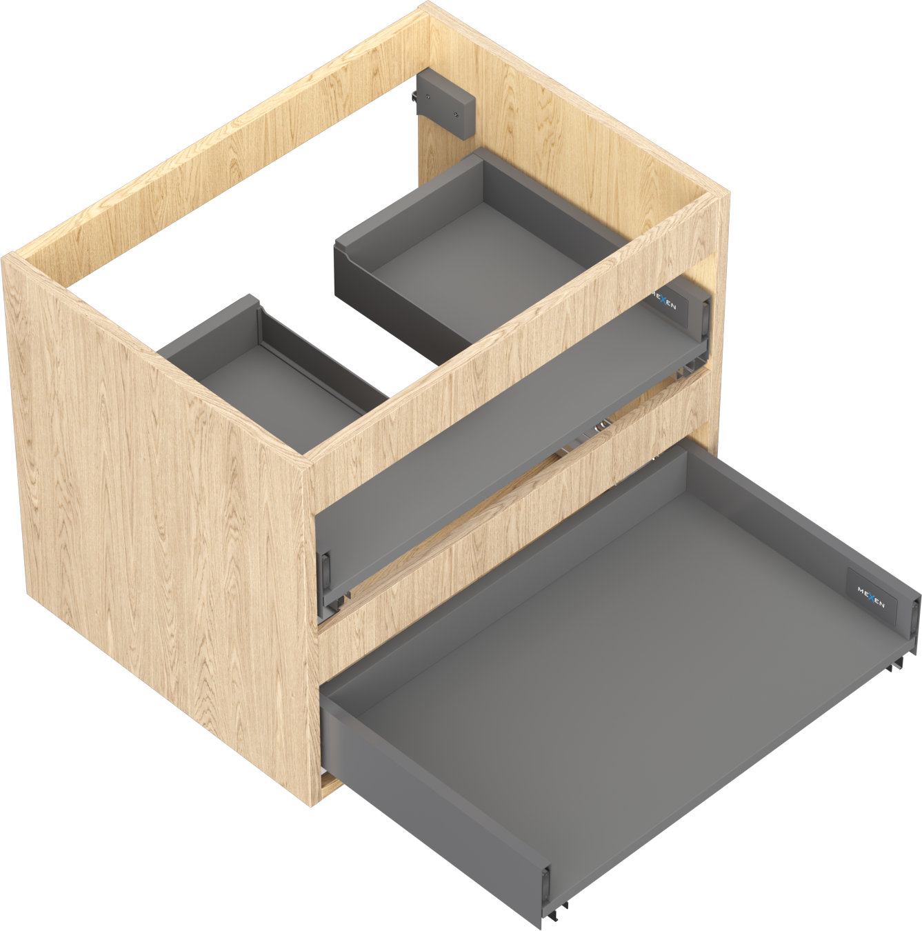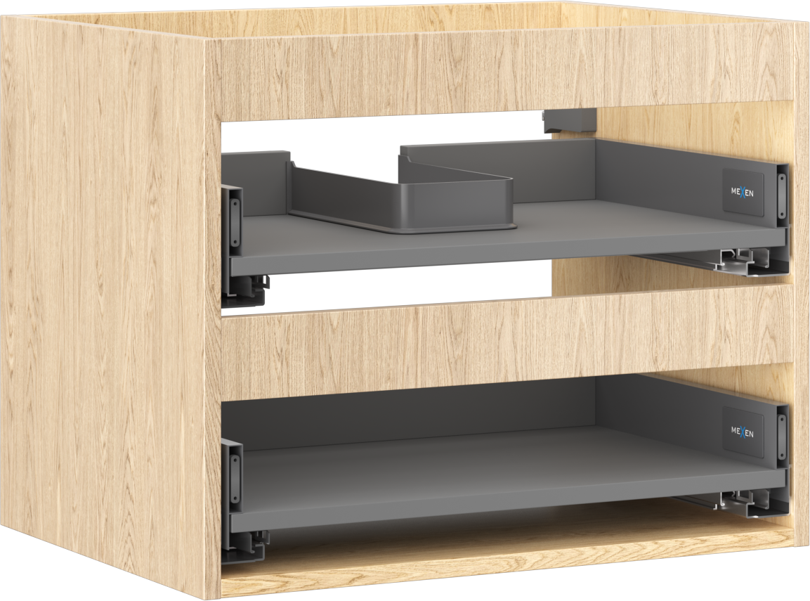 Un cajón con deslizamiento completo es un tipo de cajón que está equipado con un mecanismo que permite su extracción total del cuerpo del mueble. Este mecanismo facilita el acceso al contenido del cajón, ya que no hay necesidad de alcanzar los bordes traseros.