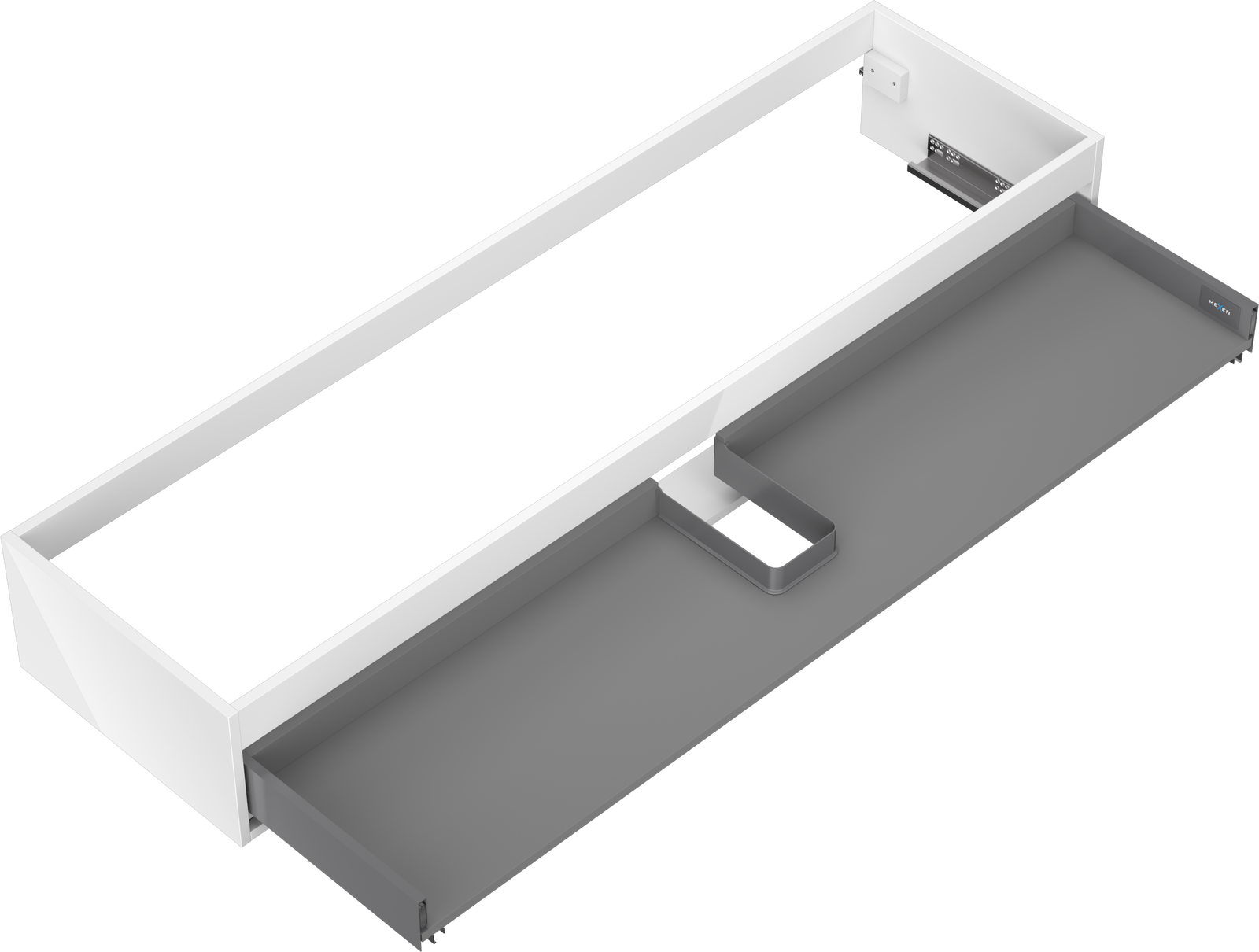El corte en el cajón está diseñado de tal manera que pueda alojar el sifón, que es necesario en las instalaciones de lavabos. Gracias a esto, el mueble puede ser montado de manera completamente funcional, sin la necesidad de renunciar al espacio en el cajón en favor de la instalación.