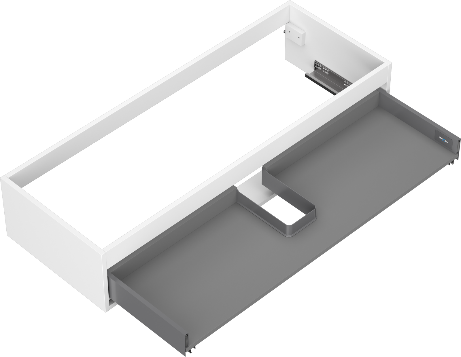 El corte en el cajón está diseñado de tal manera que pueda alojar el sifón, que es necesario en las instalaciones de lavabos. Gracias a esto, el mueble puede ser montado de manera completamente funcional, sin la necesidad de renunciar al espacio en el cajón en favor de la instalación.