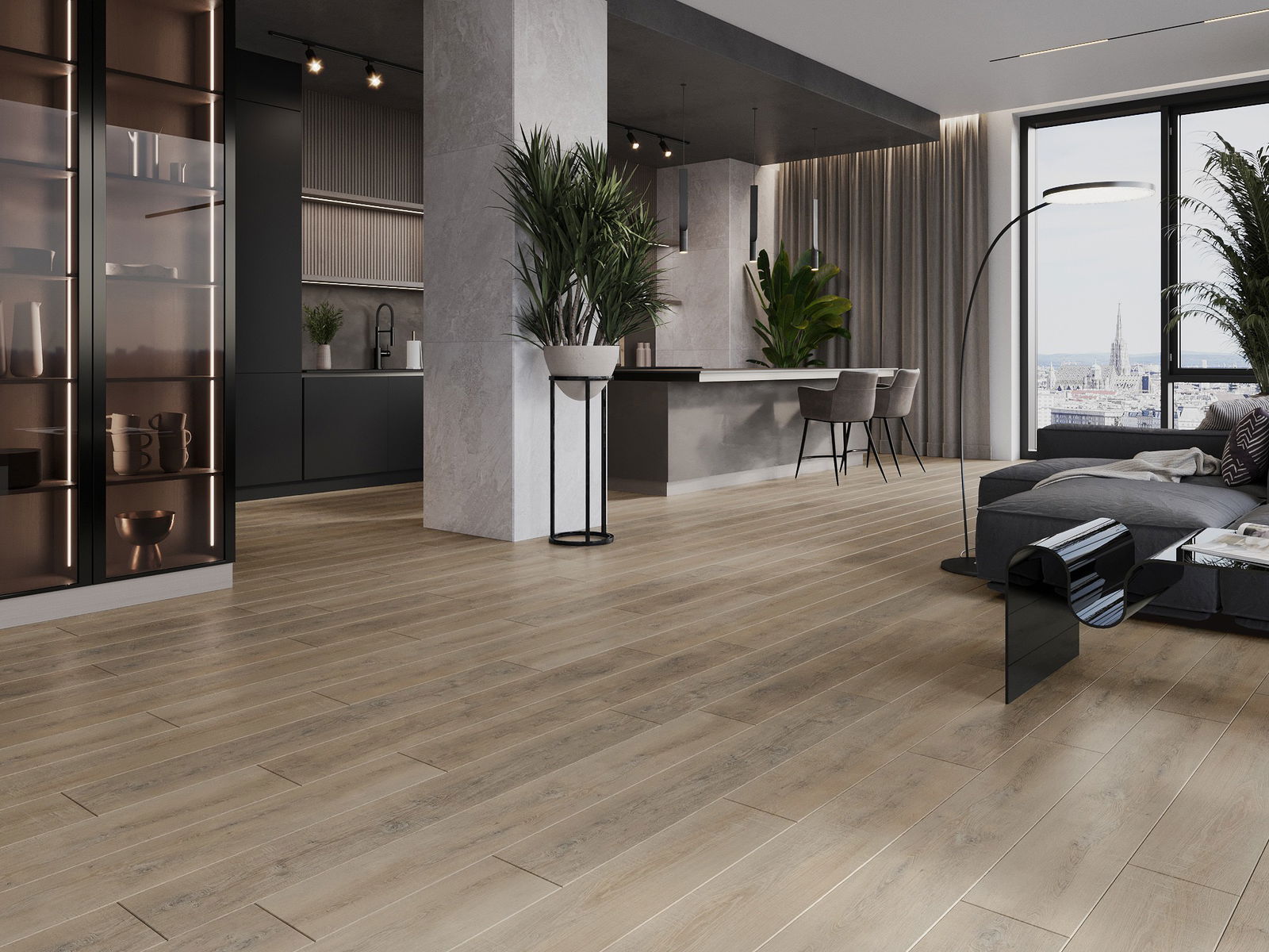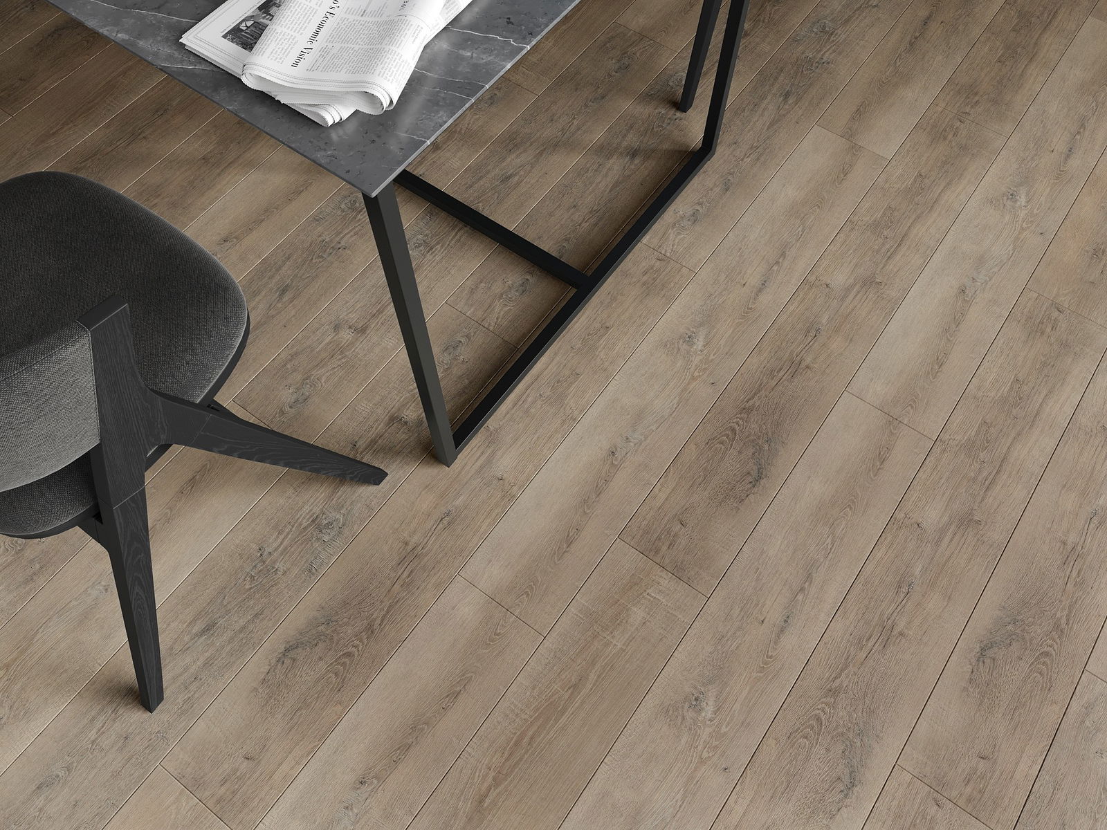 Los paneles tienen una junta de 4 lados: cada lado ha sido fresado de tal manera que al colocarlo se crea una unión en forma de V. Este diseño hace que el suelo adquiera una estructura más definida, lo que le proporciona profundidad y un carácter estético. Este efecto es especialmente apreciado en decoraciones modernas, donde los detalles resaltan el aspecto único del interior.