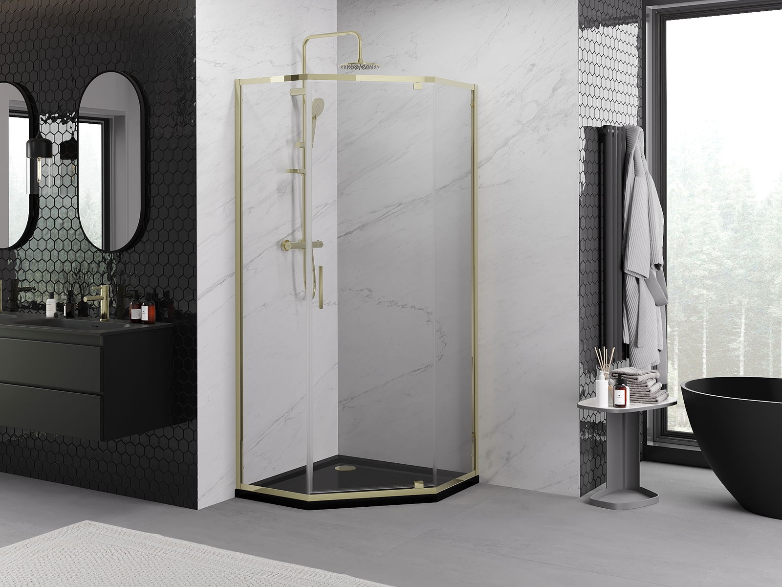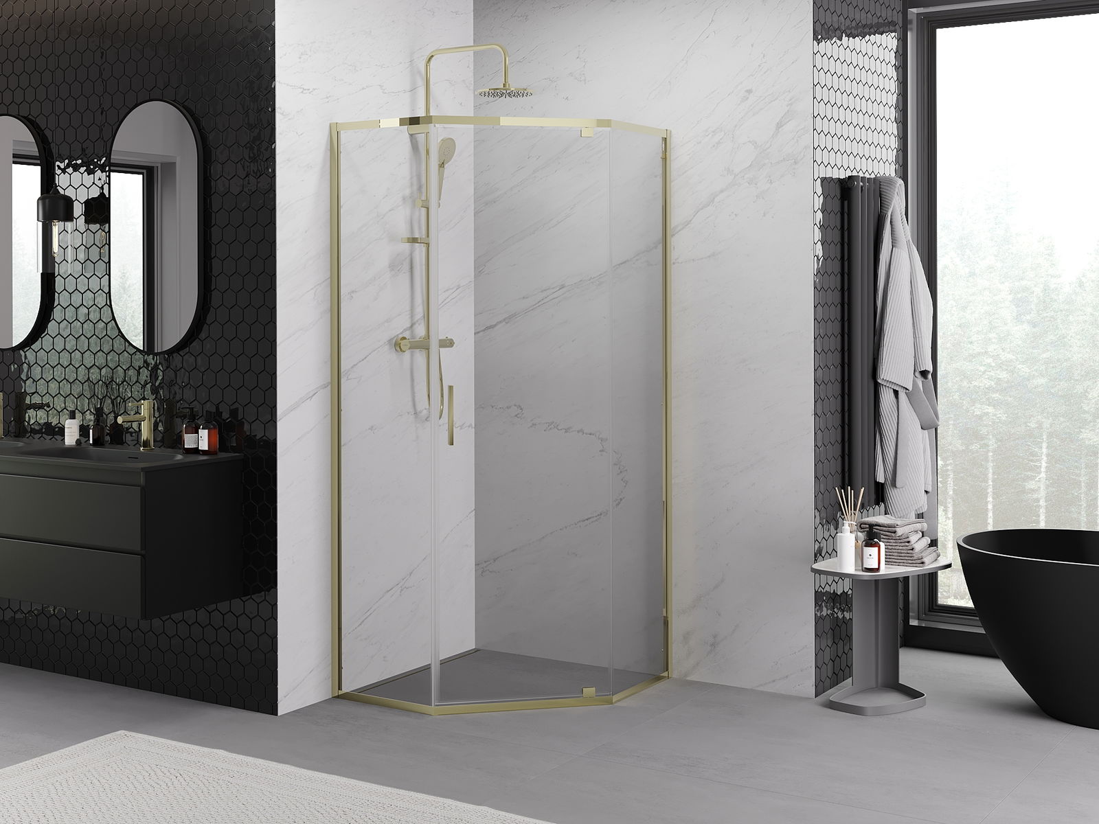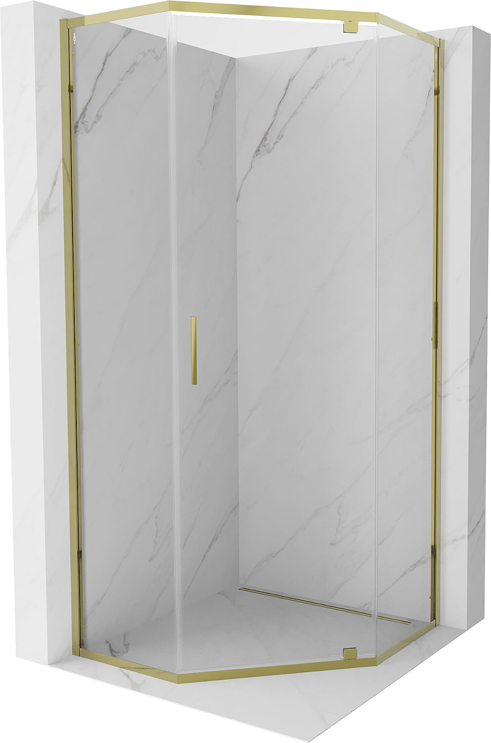 Mexen Exo cabina de ducha pentagonal abatible 80 x 80 cm, transparente, dorada - 812-080-080-50-00
