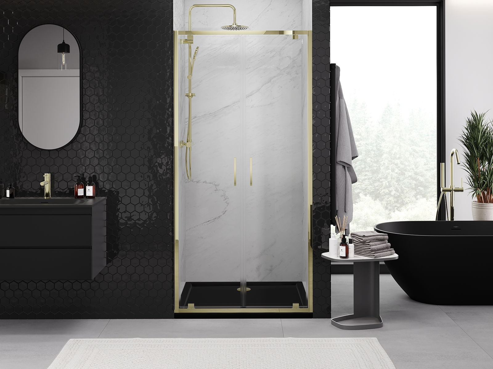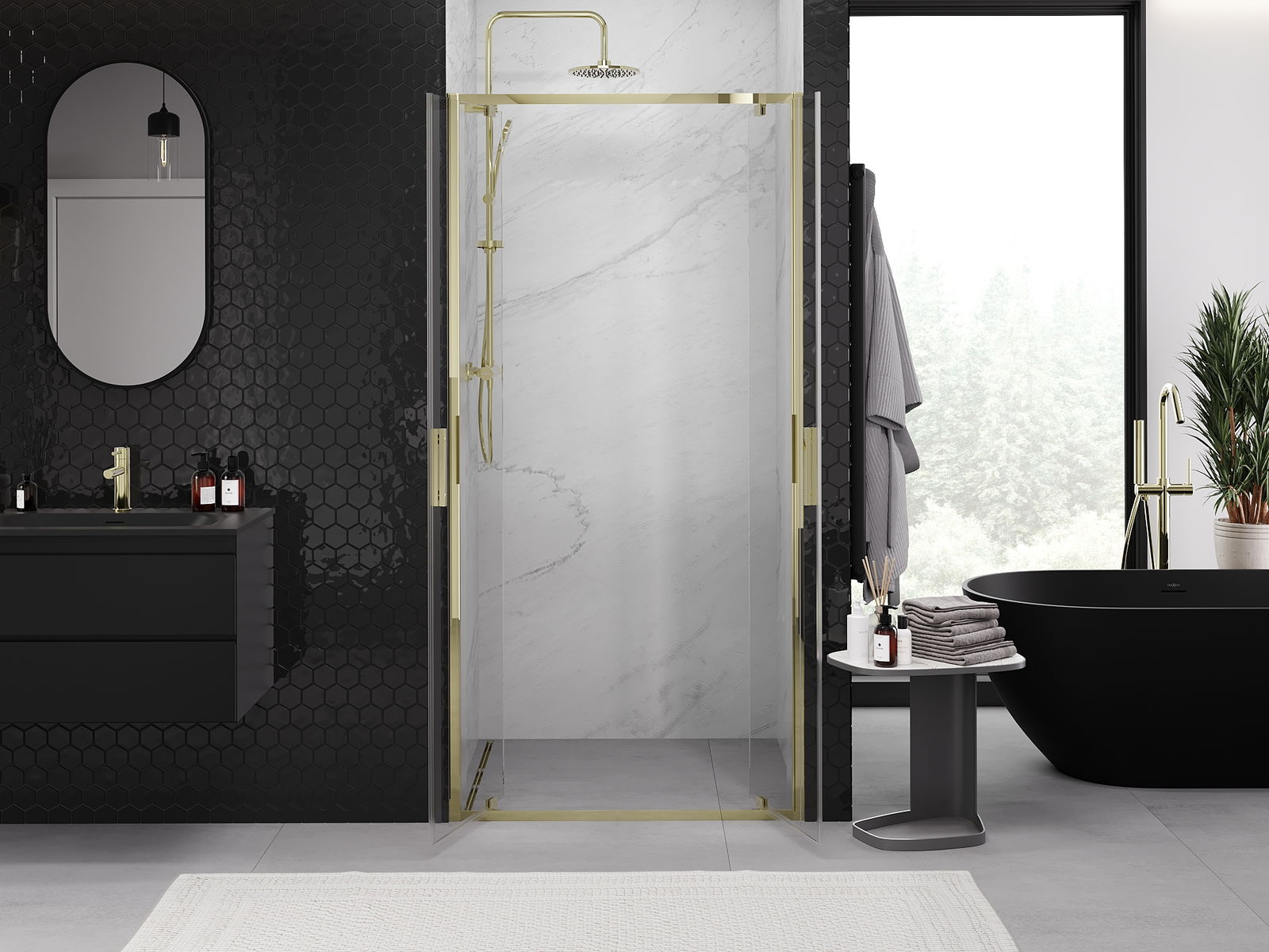 Mexen Exo puertas de ducha dobles abatibles 100 cm, transparentes, doradas - 8182-100-000-50-00