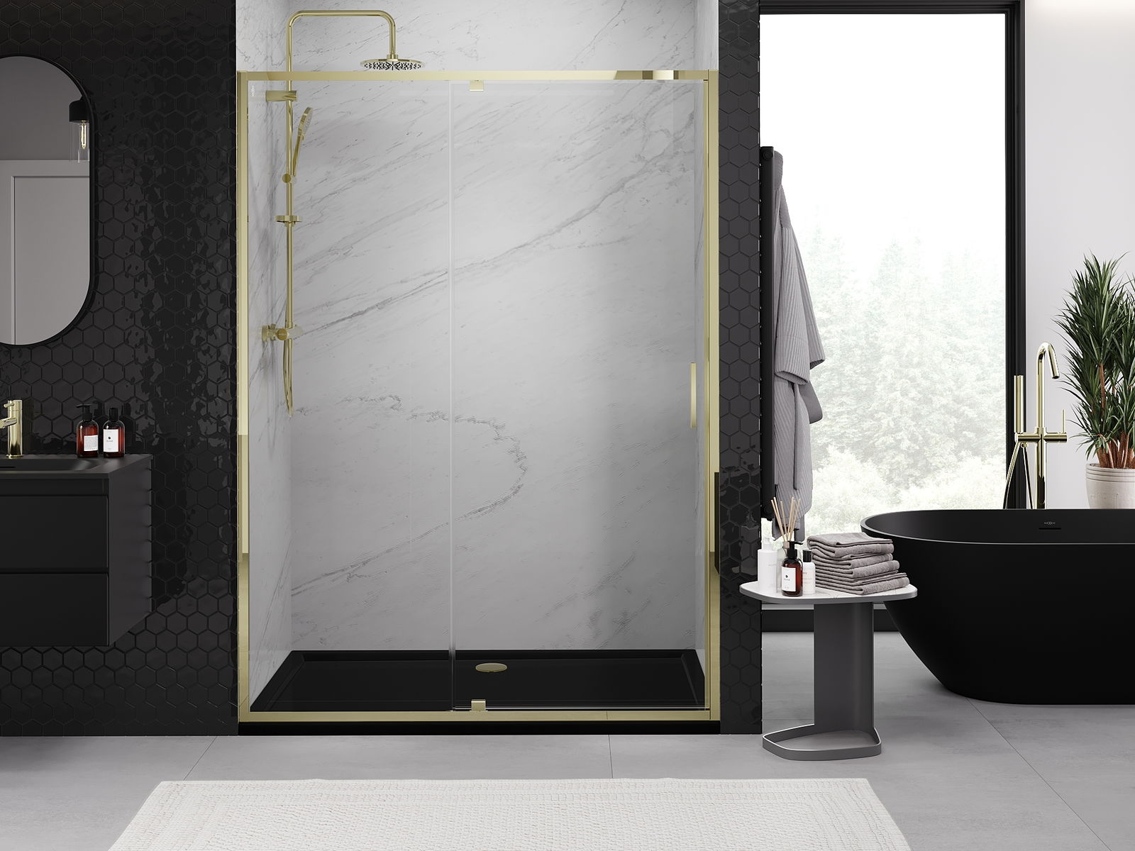 Un asa práctico y cómodo hecho de metal duradero y resistente. La forma moderna combinada con un acabado que se adapta al color de los perfiles le da a todo un aspecto moderno y estilizado, destacando la estética de cada baño.
