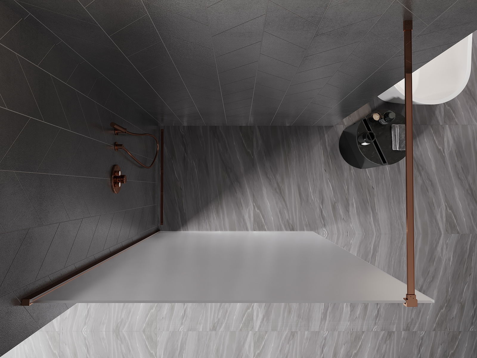 Mexen Kioto-X panel de ducha Walk-in 120 x 200 cm, escarcha 10 mm, oro rosa - 800-120-101-60-30-X