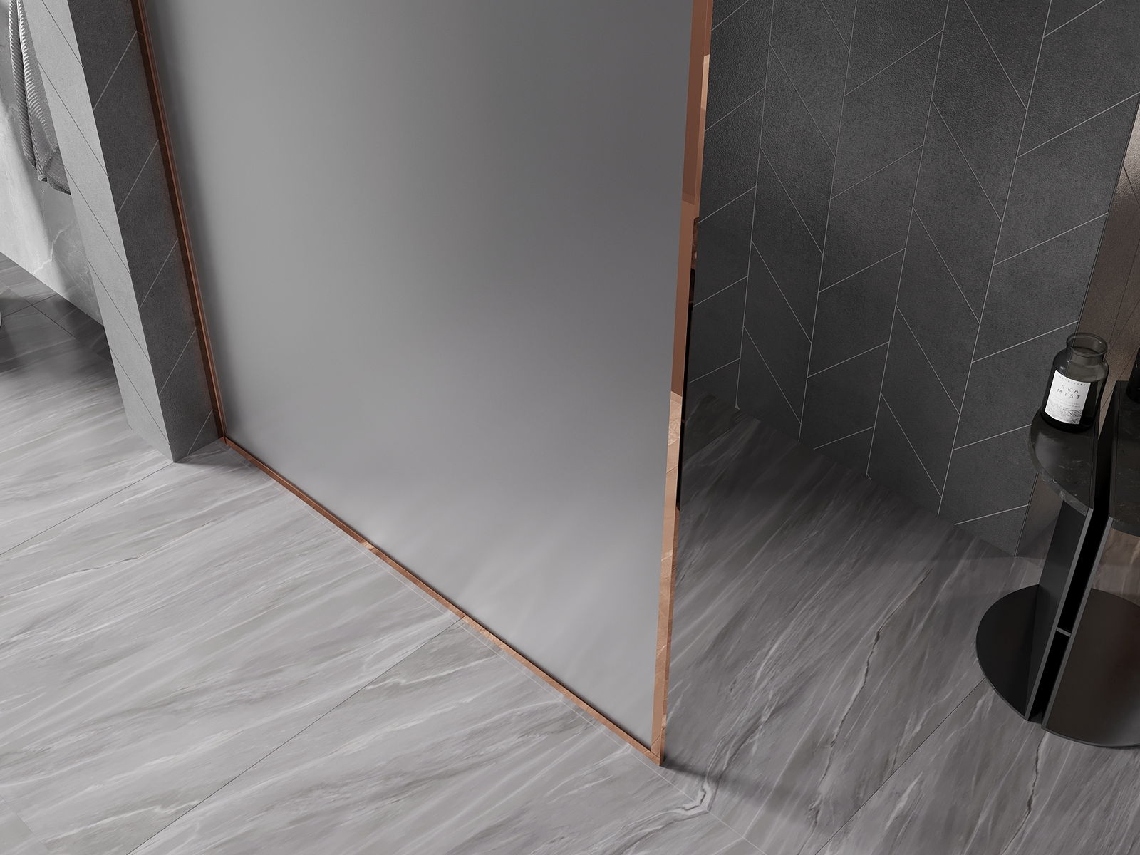 Mexen Kioto-XF panel de ducha Walk-in con marco 160 x 202 cm, escarcha 10 mm, oro rosa - 800-160-104-60-30-X