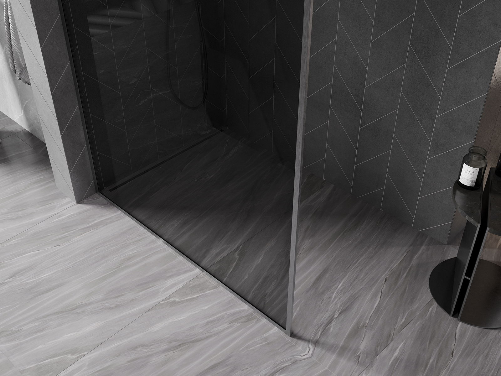Mexen Kioto-XF Panel de ducha Walk-in con marco 150 x 202 cm, grafito 10 mm, gris arma cepillado - 800-150-104-66-40-X