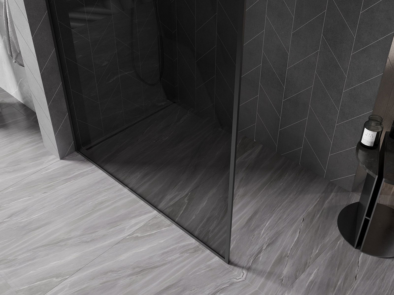Mexen Kioto-XF mampara de ducha Walk-in con marco 70 x 202 cm, grafito 10 mm, negro - 800-070-104-70-40-X