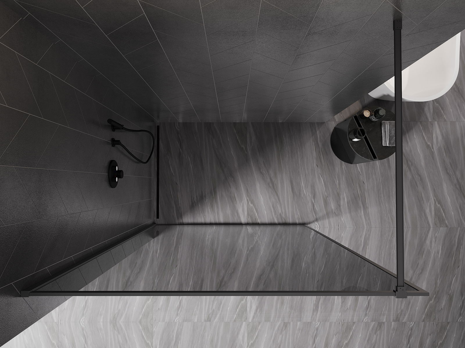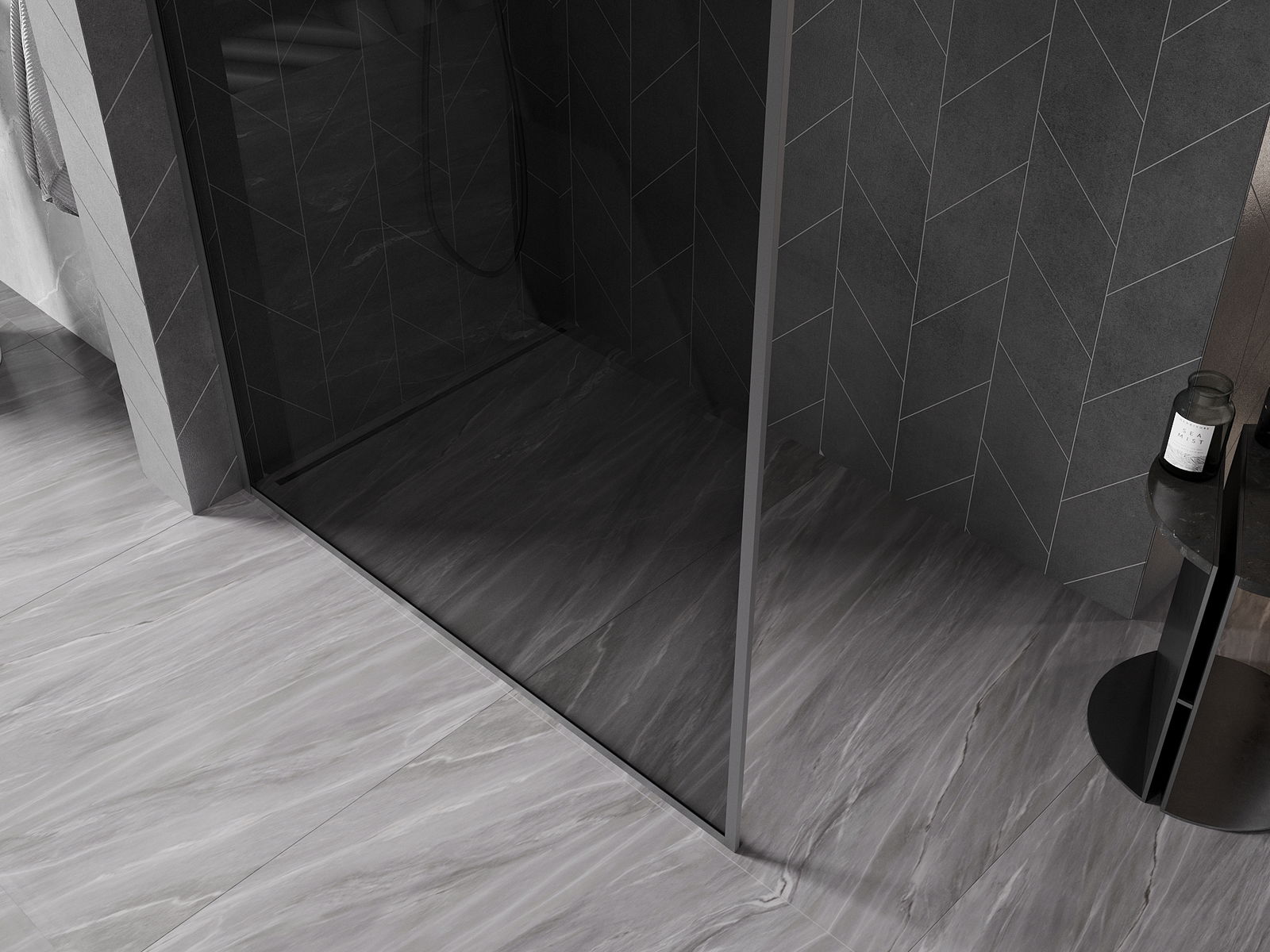 Mexen Kioto-XF Panel de ducha Walk-in con marco 50 x 202 cm, grafito 10 mm, metal pistola - 800-050-104-95-40-X