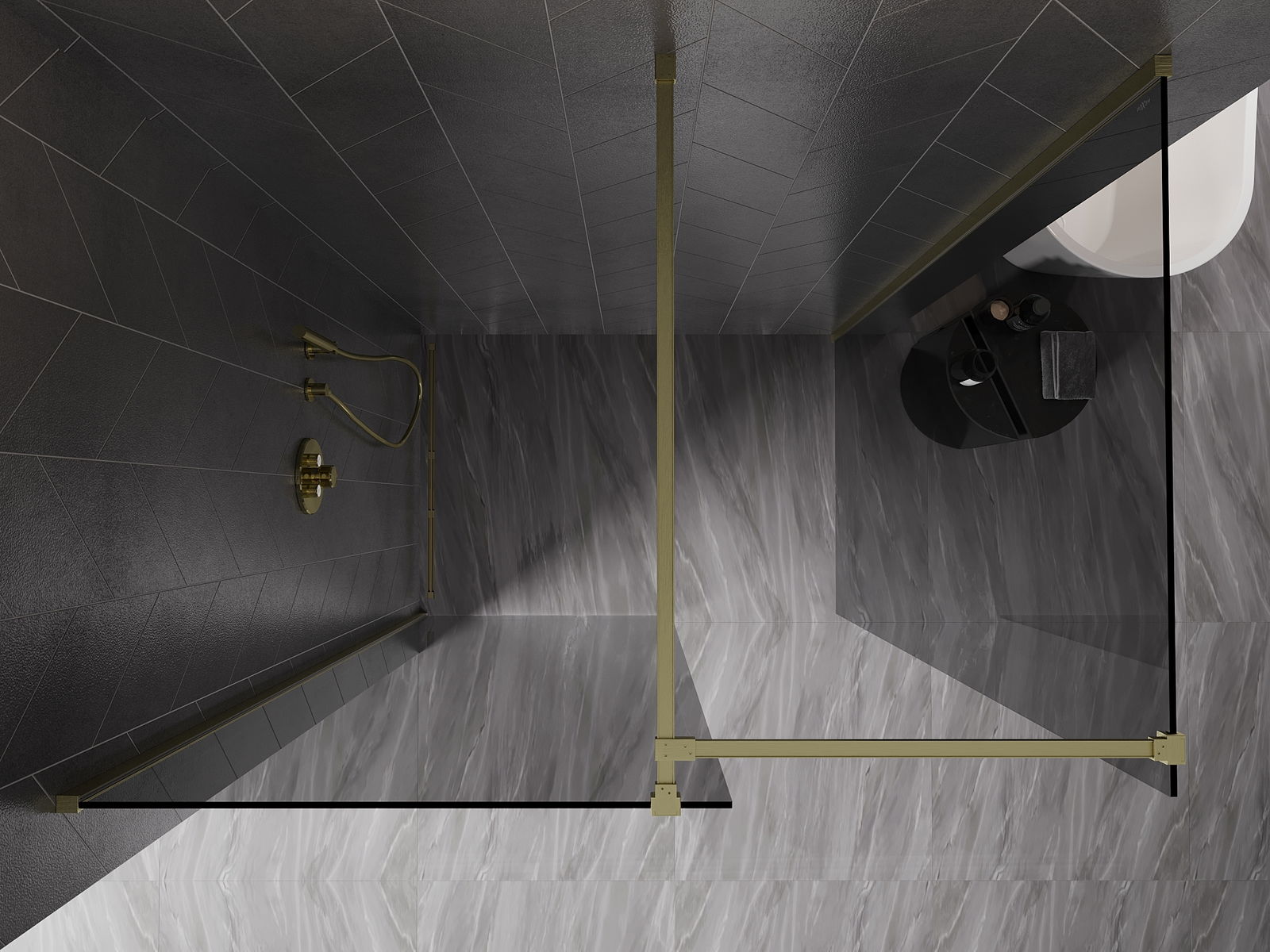 Mexen Kioto-X pared de ducha Walk-in 130 x 100 cm, transparente 10 mm, oro cepillado - 800-130-202-55-00-100-X