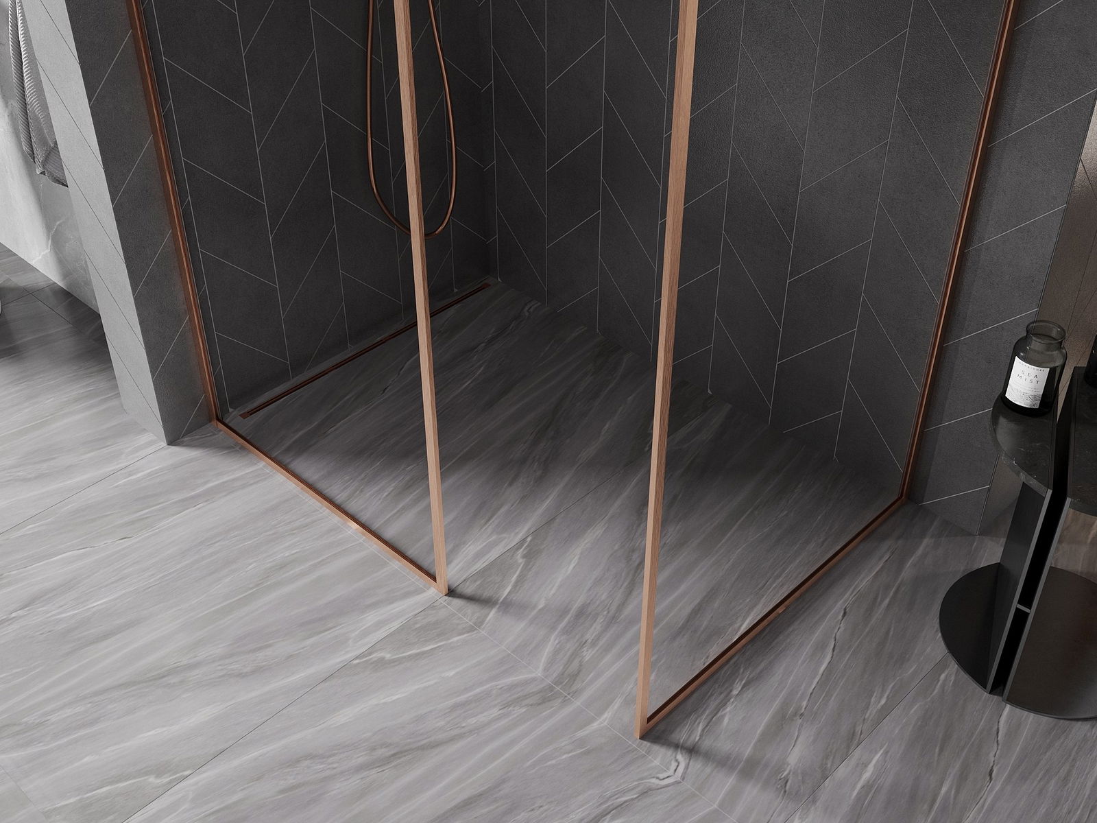 Mexen Kioto-XF mampara de ducha Walk-in con marco 110 x 80 cm, transparente 10 mm, cobre cepillado - 800-110-202-04-65-080-XF