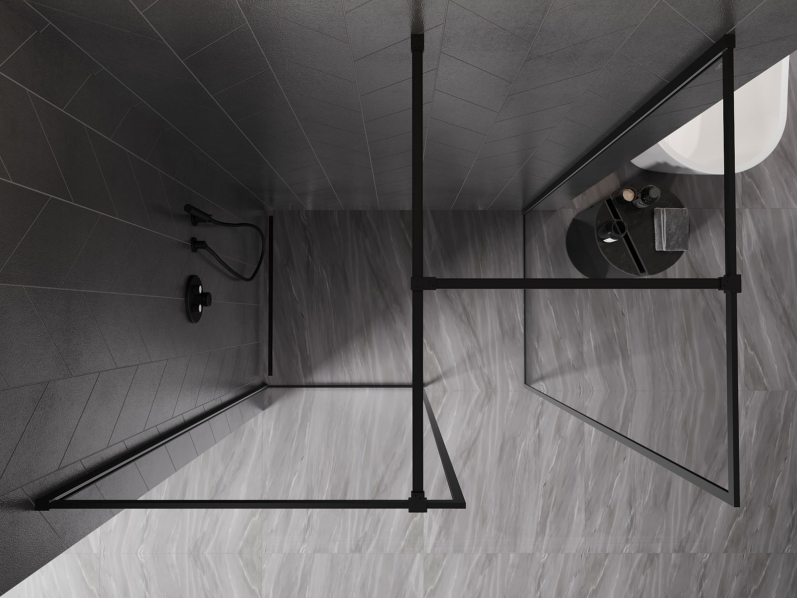 Mexen Kioto-XF panel de ducha Walk-in con marco 130 x 120 cm, transparente 10 mm, negro - 800-130-202-04-70-120-XF