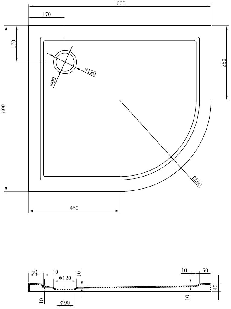 El plato de ducha fue diseñado de tal manera que el agua pueda fluir libremente hacia el desagüe. Garantiza un drenaje rápido y eficiente del agua desde la superficie del plato, previniendo la formación de charcos e inundaciones en el baño.