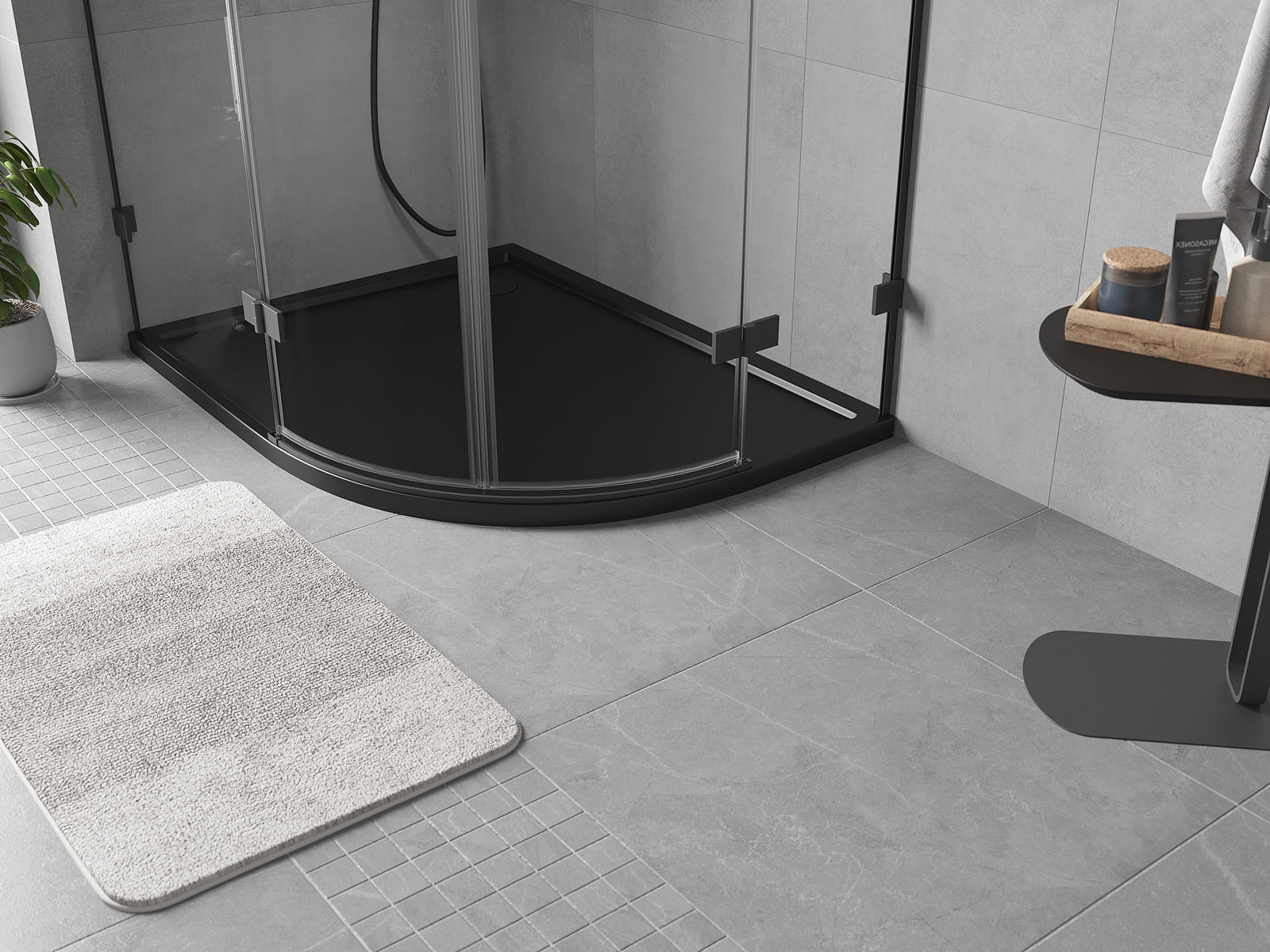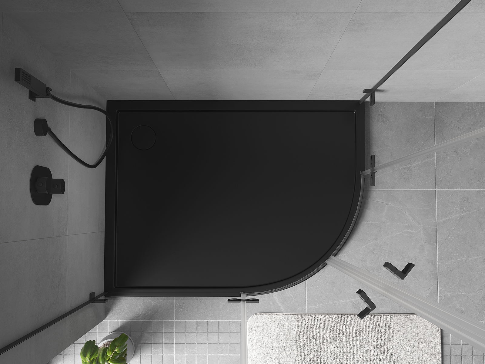 Mexen Flow plato de ducha semicircular asimétrico slim izquierdo 100 x 80 cm, negro mate - 46Q708010L