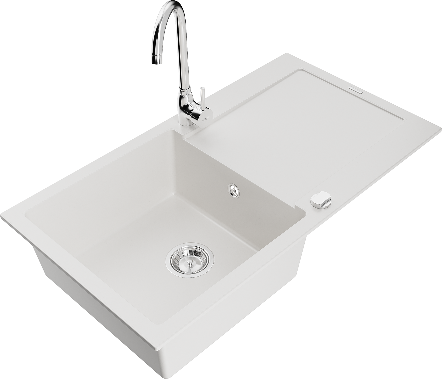 Mexen Leo fregadero de granito de 1 seno con escurridor y grifo de cocina Telma, blanco - 6501-20-670200-00