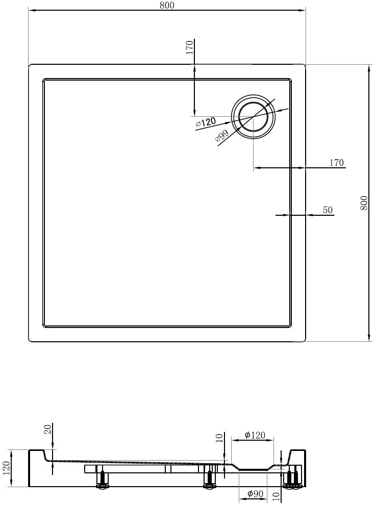 El plato de ducha fue diseñado de tal manera que el agua pueda fluir libremente hacia el desagüe. Garantiza un drenaje rápido y eficiente del agua desde la superficie del plato, previniendo la formación de charcos e inundaciones en el baño.