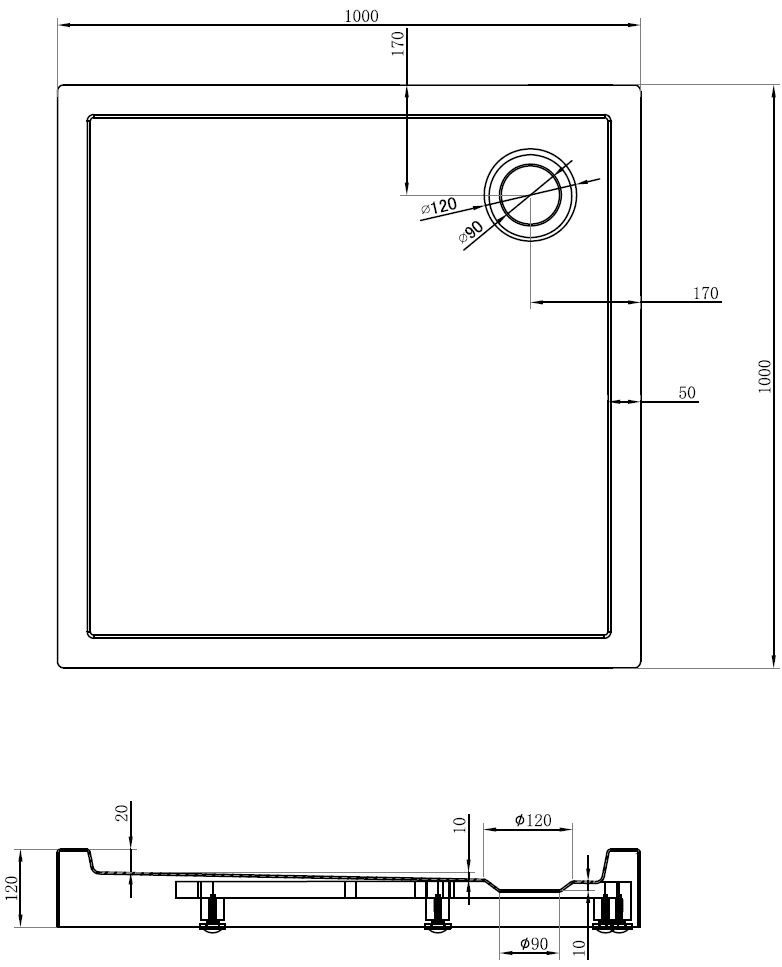 El plato de ducha fue diseñado de tal manera que el agua pueda fluir libremente hacia el desagüe. Garantiza un drenaje rápido y eficiente del agua desde la superficie del plato, previniendo la formación de charcos e inundaciones en el baño.