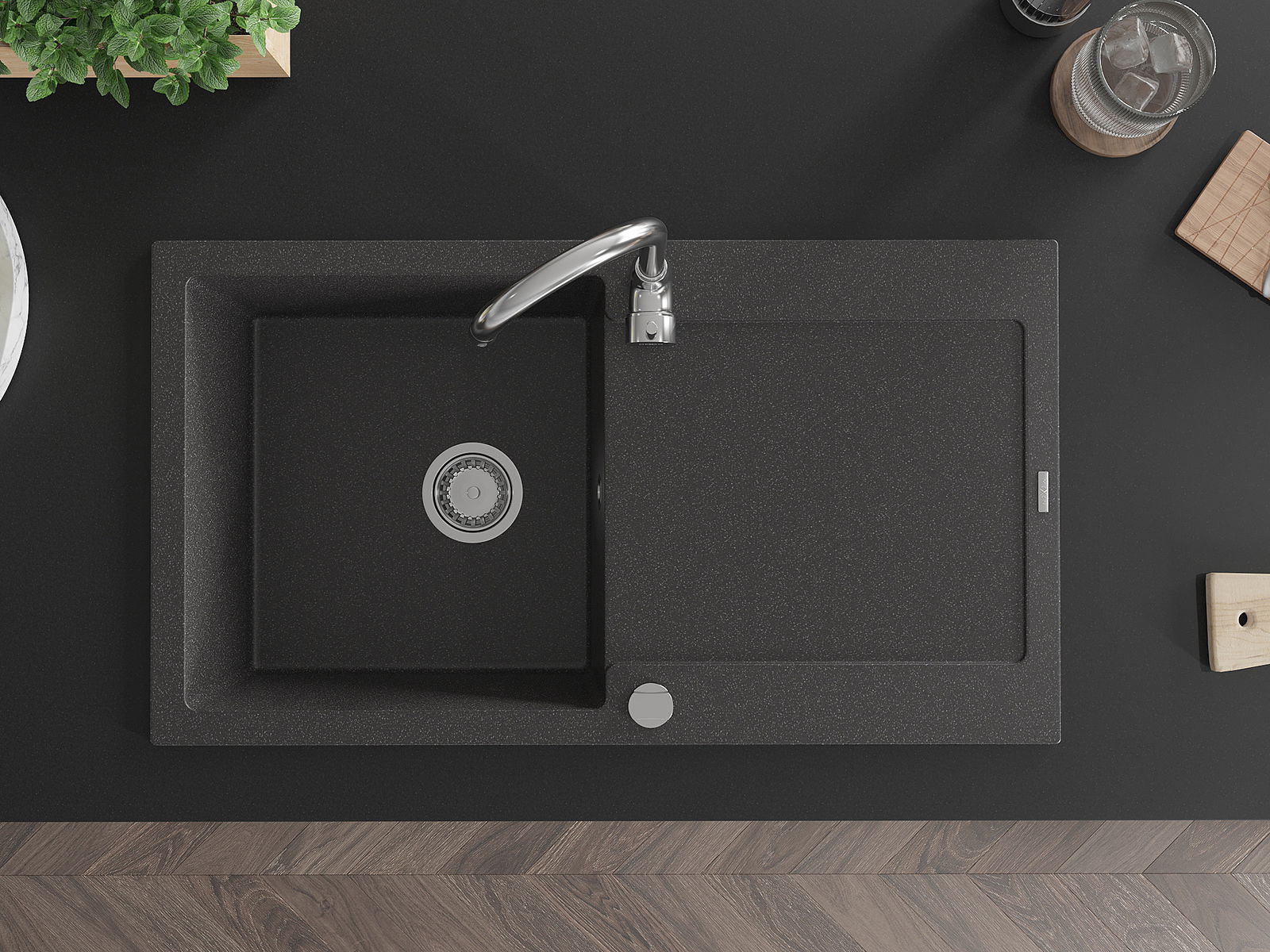 El fregadero está hecho de granito de alta calidad. Constituye un complemento elegante y, sobre todo, práctico para cualquier cocina, independientemente de su estilo. La alta calidad y durabilidad del granito aseguran un uso durante muchos años.