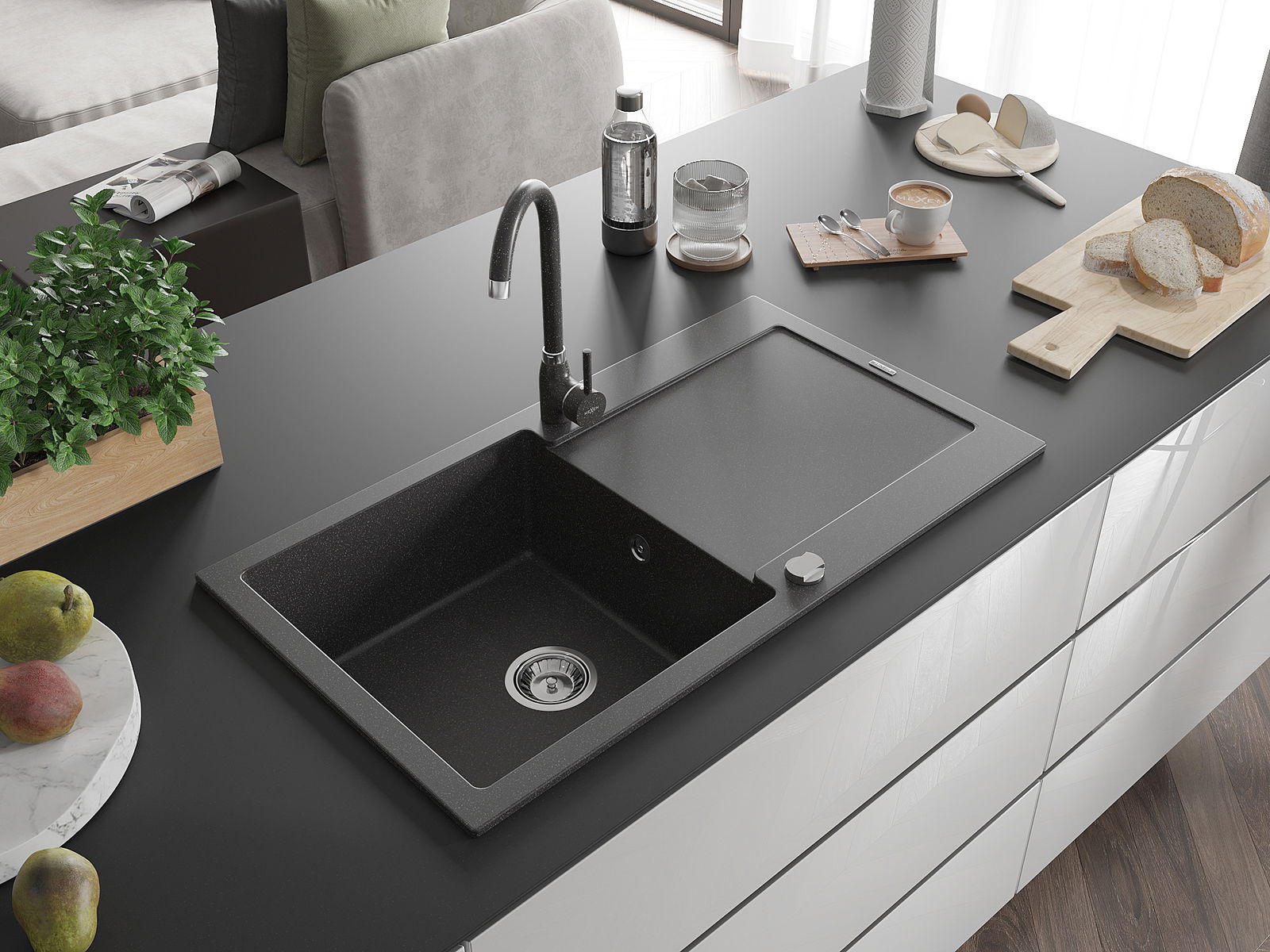 El fregadero está hecho de granito de alta calidad. Constituye un complemento elegante y, sobre todo, práctico para cualquier cocina, independientemente de su estilo. La alta calidad y durabilidad del granito aseguran un uso durante muchos años.