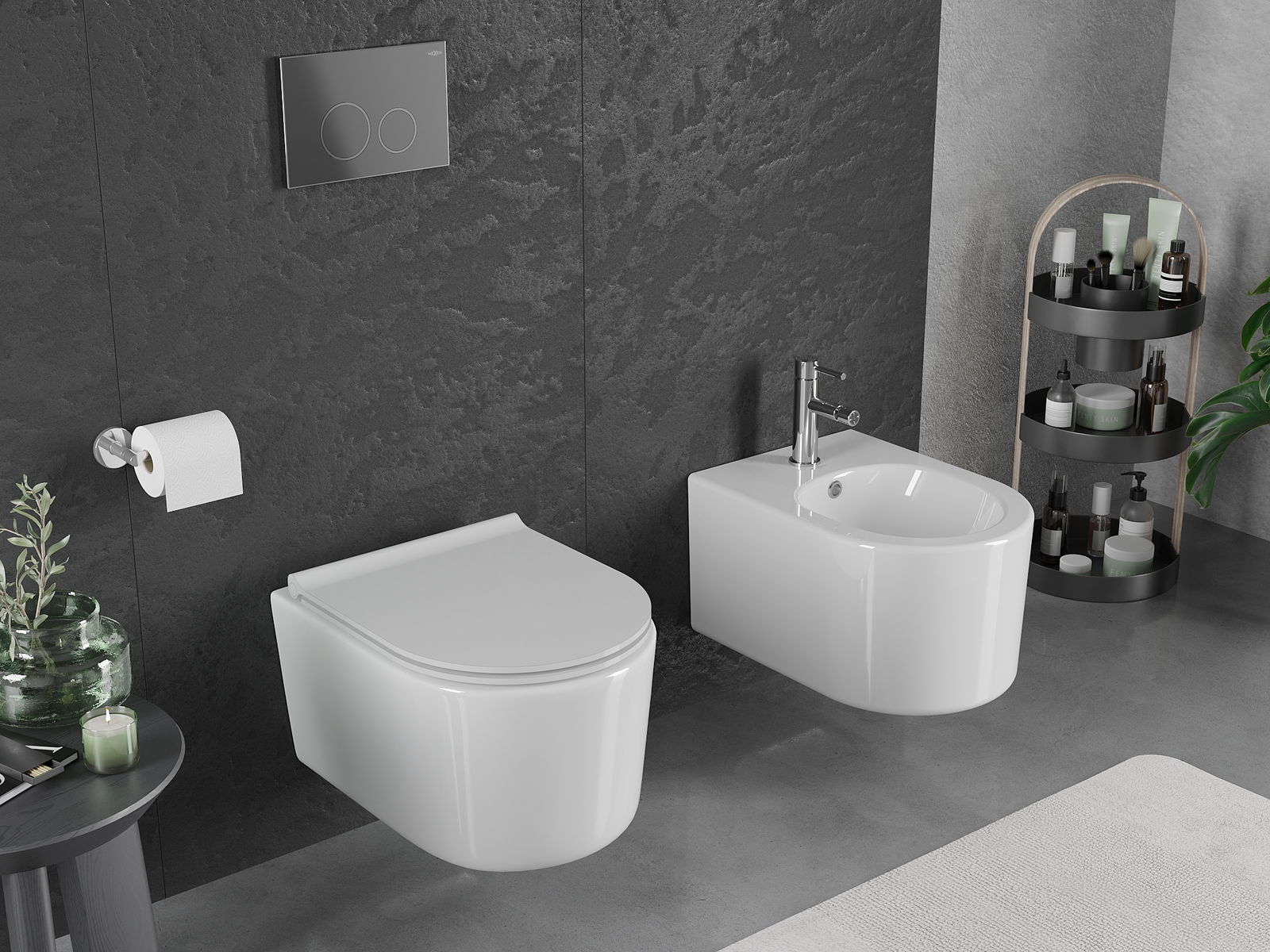 Tabla delgada con una forma excepcionalmente ergonómica y una apariencia extremadamente delgada. El diseño se adapta perfectamente al interior moderno del baño, dando una sensación de ligereza. Una elección excelente para arreglos minimalistas.