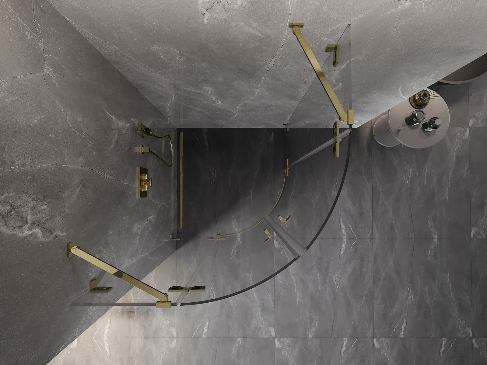 Mexen Lunar cabina de ducha semicircular abatible 90 x 90 cm, transparente, dorada - 833-090L-090P-50-00
