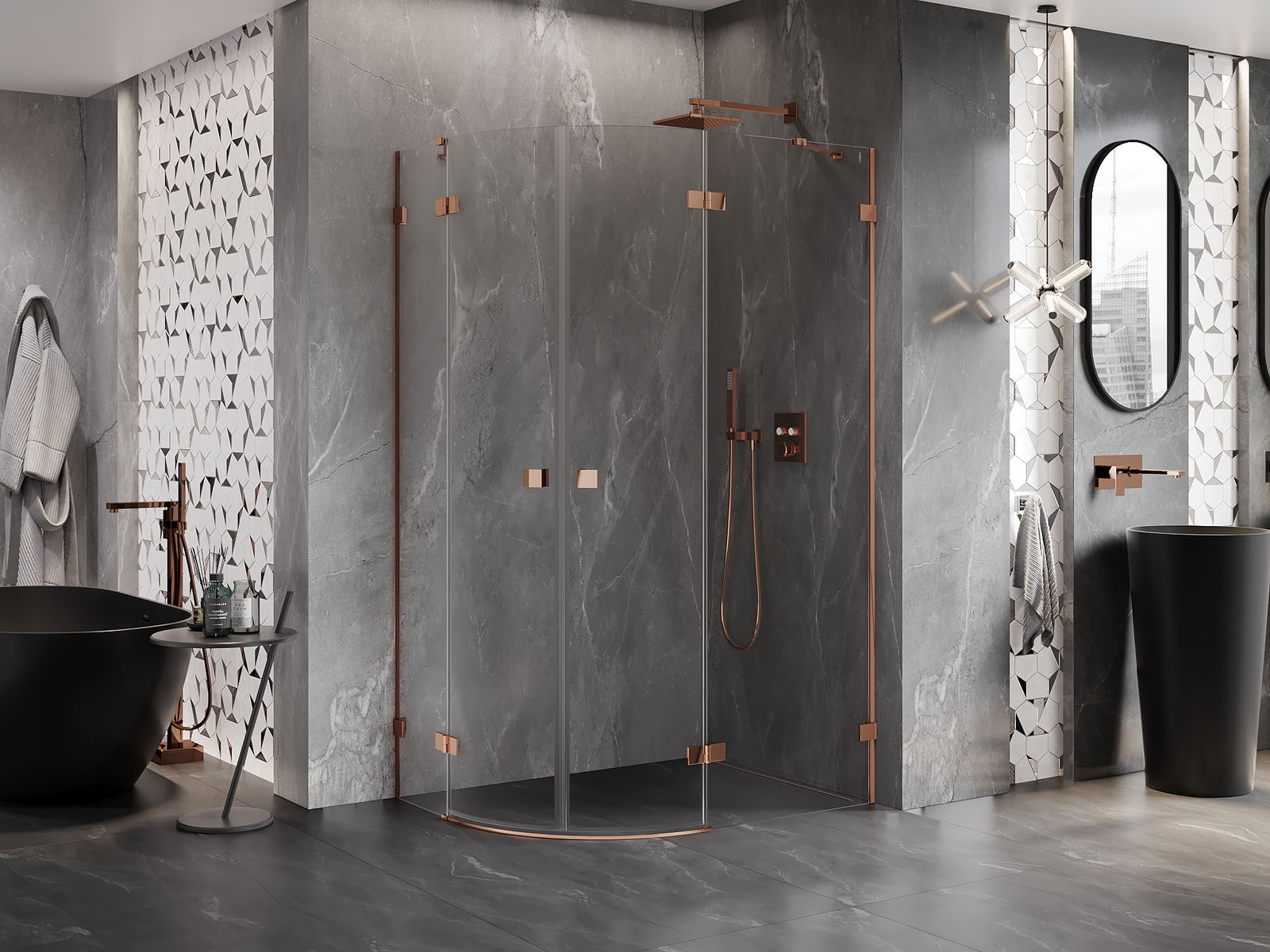 Mexen Lunar cabina de ducha semicircular abatible derecha 90 x 80 cm, transparente, oro rosa - 833-090P-080L-60-00