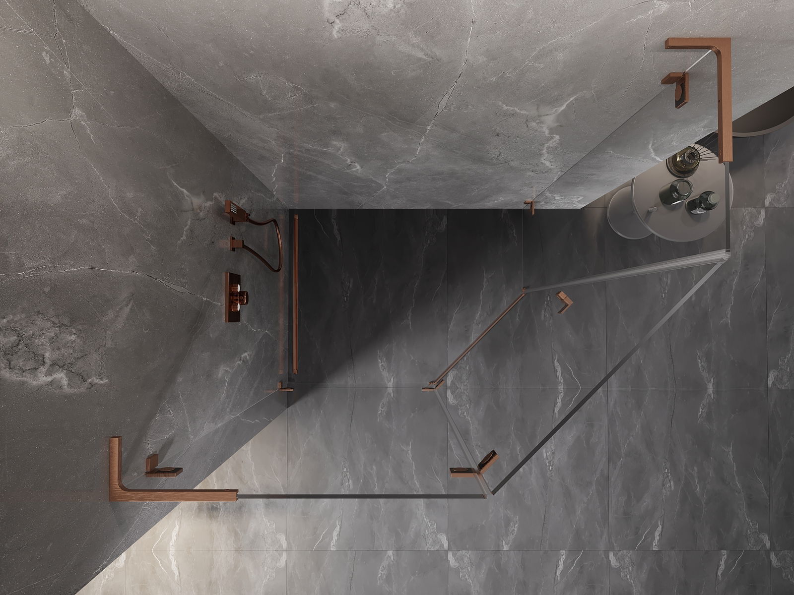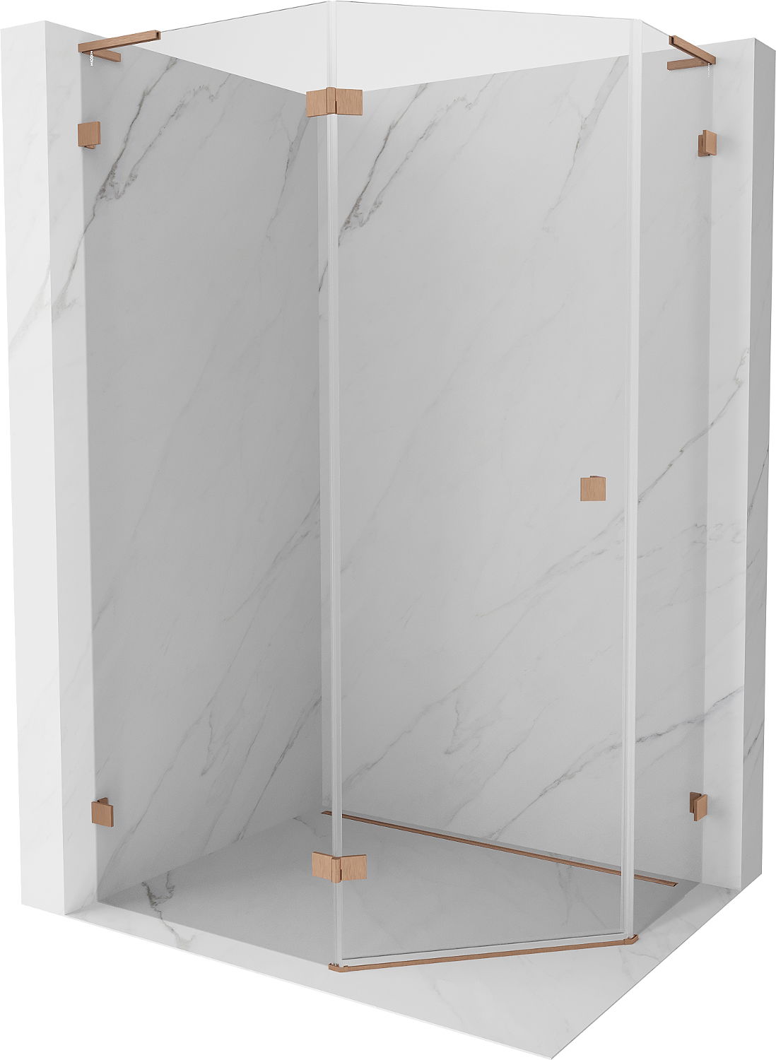 Mexen Lunar L cabina de ducha pentagonal batiente izquierda 90 x 80 cm, transparente, cobre cepillado - 831L-090L-080P-65-00-L