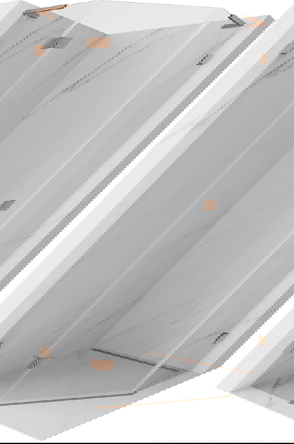 Mexen Lunar L cabina de ducha pentagonal abatible izquierda 90 x 90 cm, transparente, cobre cepillado - 831L-090L-090P-65-00-L