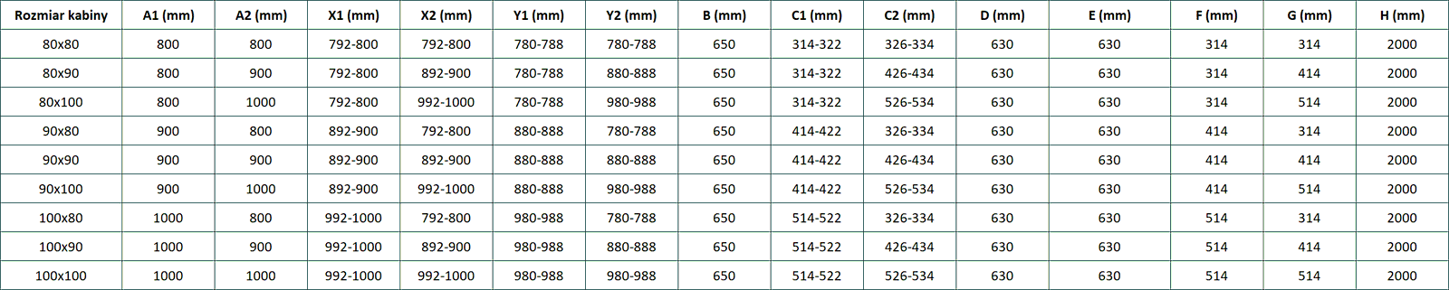 Las puertas batientes permiten la máxima libertad durante el uso. Tienen bisagras resistentes hechas de un material duradero, que no presentan dificultades para mantener la limpieza y permiten un fácil acceso al interior de la cabina.