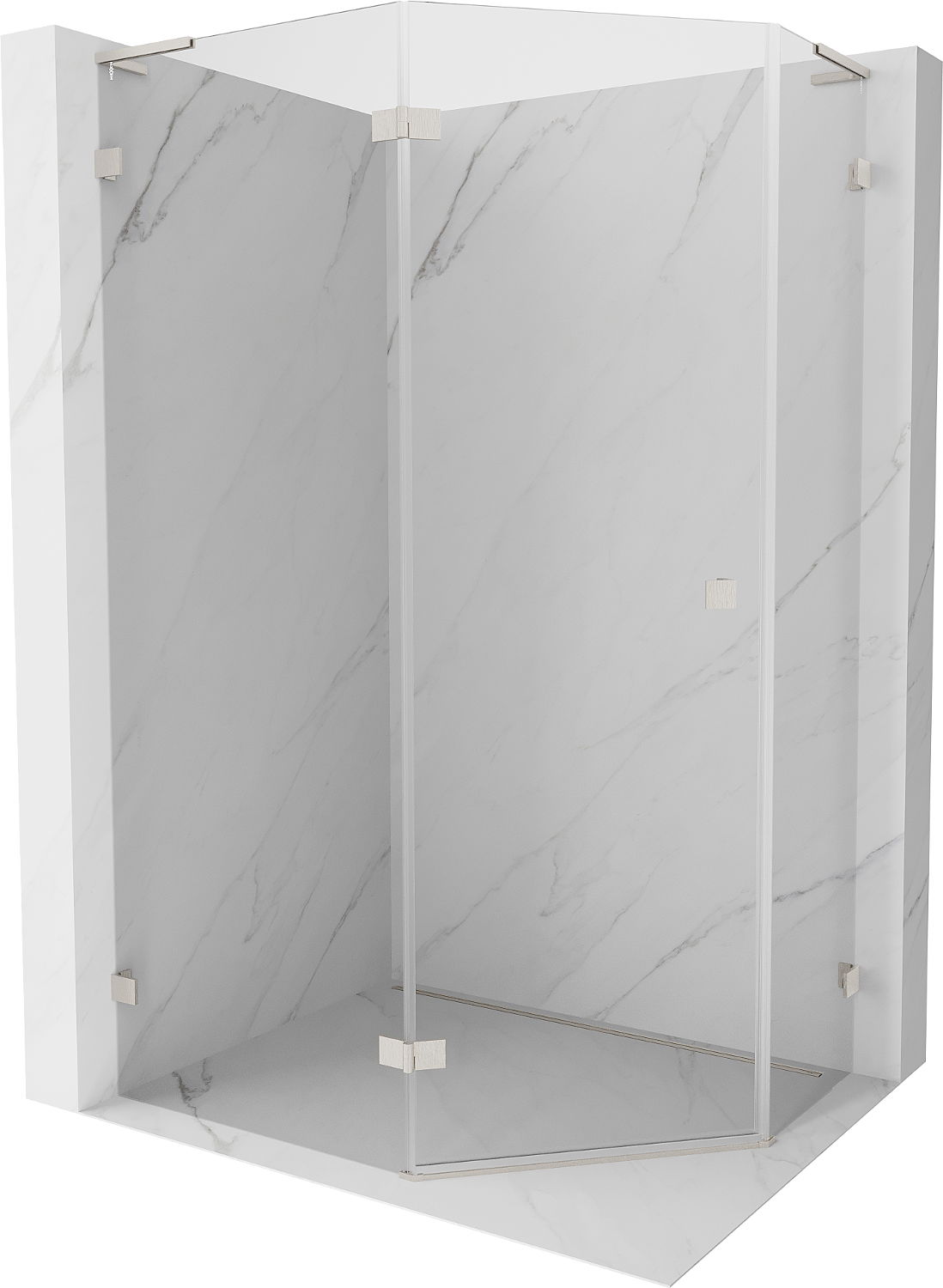 Mexen Lunar L cabina de ducha pentagonal abatible izquierda 90 x 80 cm, transparente, níquel cepillado - 831L-090L-080P-97-00-L