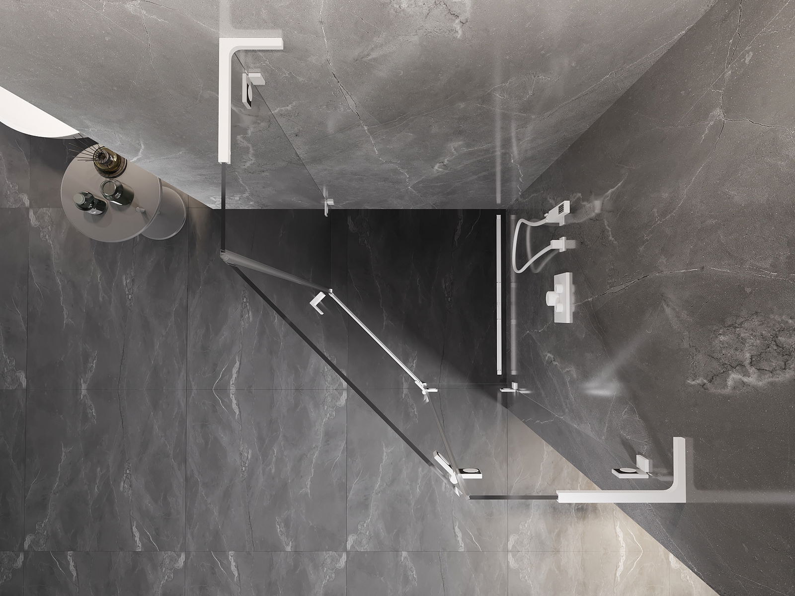 Mexen Lunar L cabina de ducha pentagonal abatible derecha 90 x 90 cm, transparente, blanca - 831L-090P-090L-20-00-P