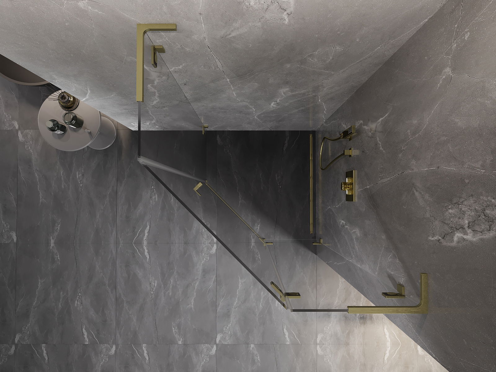 Mexen Lunar L cabina de ducha pentagonal abatible derecha 90 x 90 cm, transparente, dorado cepillado - 831L-090P-090L-55-00-P