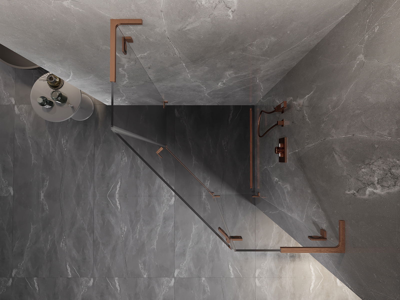 Mexen Lunar L cabina de ducha pentagonal abatible derecha 100x100 cm, transparente, cobre cepillado - 831L-100P-100L-65-00-P