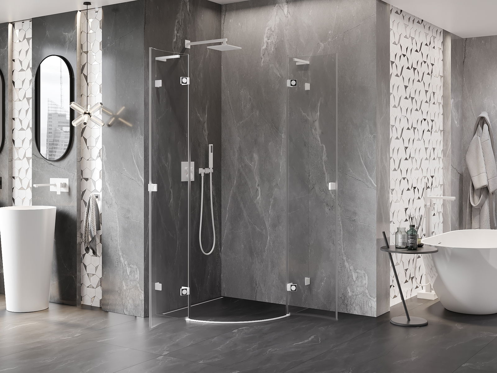 Las puertas batientes permiten la máxima libertad durante el uso. Tienen bisagras resistentes hechas de un material duradero, que no presentan dificultades para mantener la limpieza y permiten un fácil acceso al interior de la cabina.
