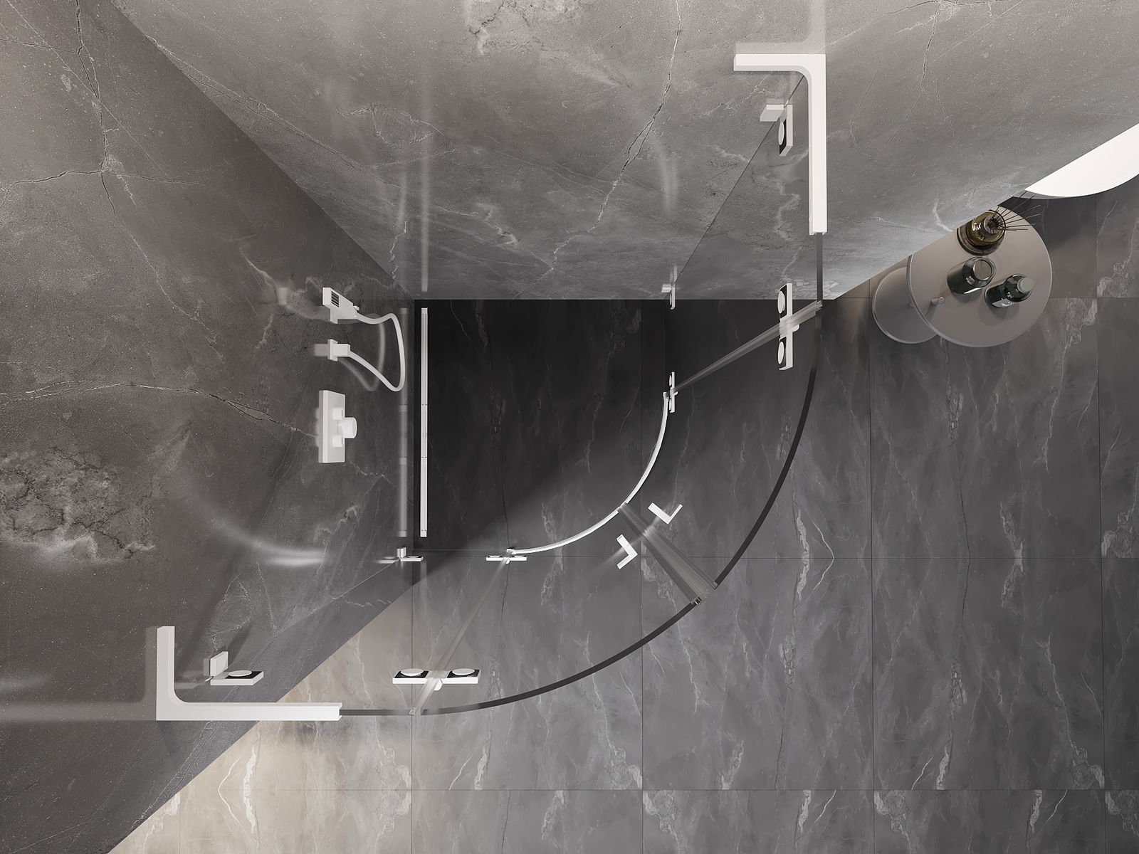Mexen Lunar L cabina de ducha semicircular abatible 90 x 90 cm, transparente, blanca - 833L-090L-090P-20-00