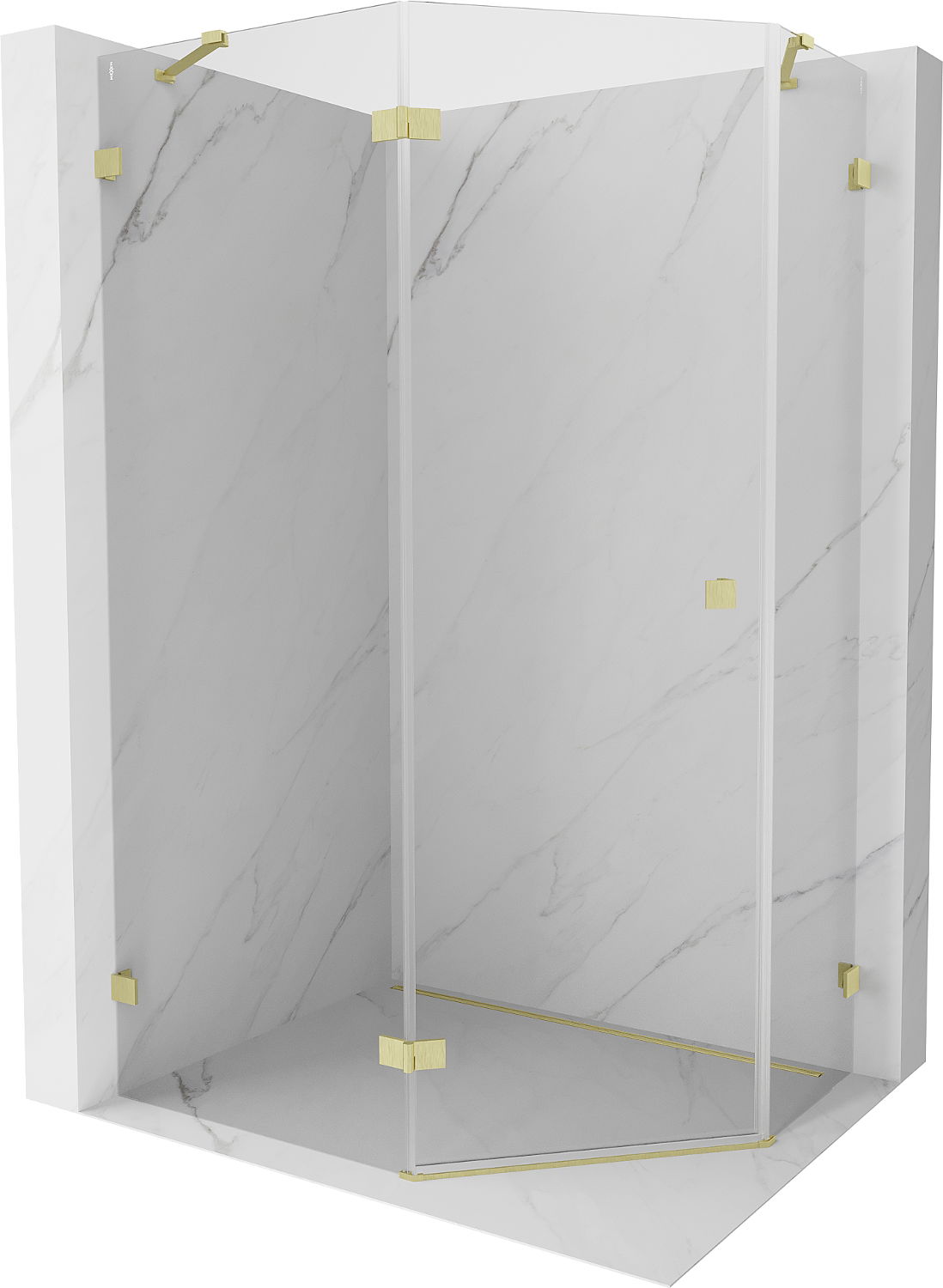 Mexen Lunar cabina de ducha pentagonal abatible izquierda 90 x 80 cm, transparente, dorado cepillado - 831-090L-080P-55-00-L