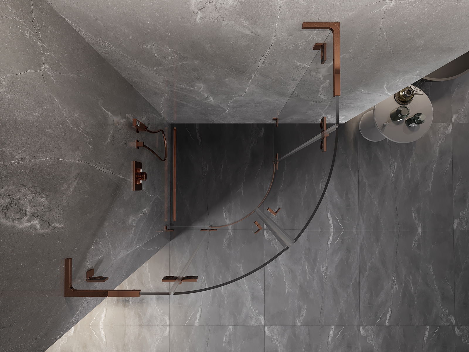 Mexen Lunar L cabina de ducha semicircular abatible 100 x 100 cm, transparente, oro rosa - 833L-100L-100P-60-00