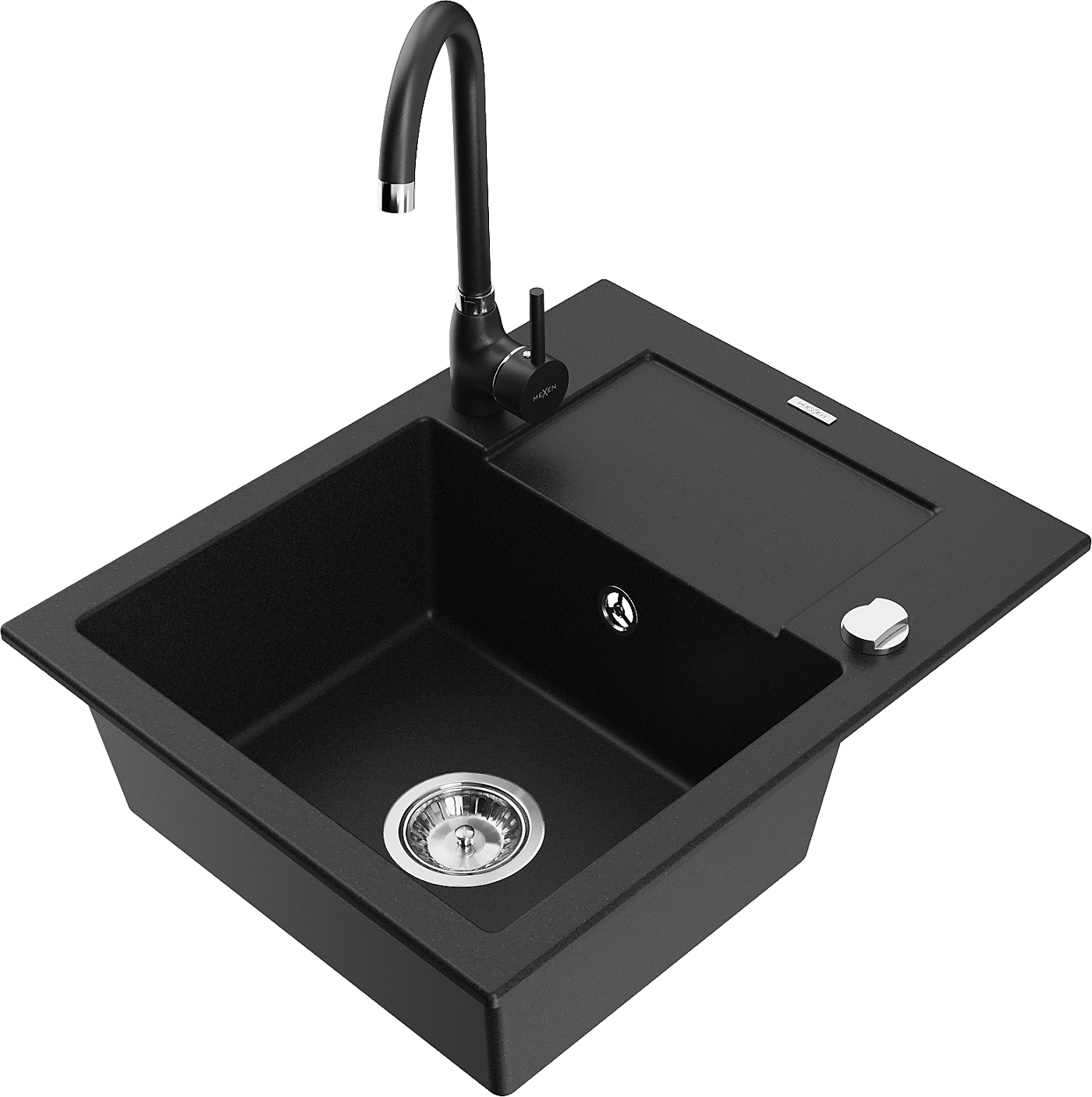 Mexen Enzo fregadero de granito de 1 cubeta con escurridor y grifo de cocina Telma, negro - 6506-77-670200-70